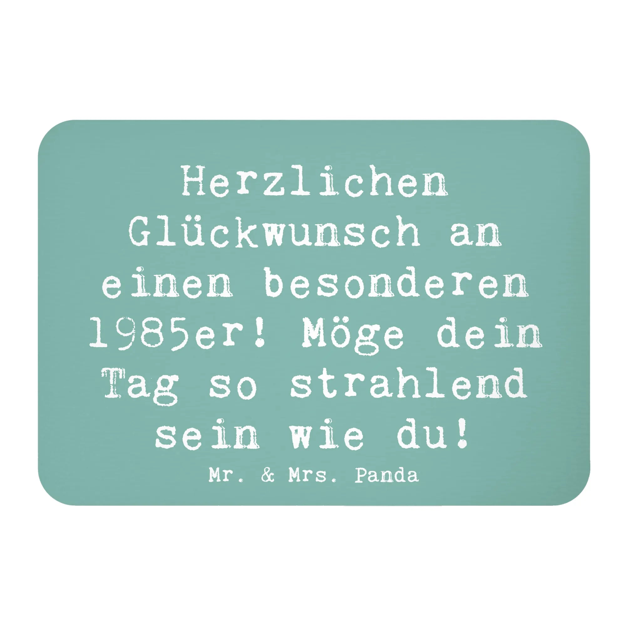 Eine wunderbare Art, Gratulationen und herzliche Wünsche für einen ganz besonderen Menschen zu übermitteln – unser Kühlschrankmagnet "Herzlichen Glückwunsch an einen besonderen 1985er! Möge dein Tag so strahlend sein wie du!". Dieser außergewöhnliche Magnet aus der Geburtstag Geburtsjahr-Kollektion von Mr. & Mrs. Panda ist nicht nur eine schöne Dekoration für deinen Kühlschrank oder das Whiteboard, sondern auch ein liebevolles Geschenk, das jedem Geburtstagskind ein Lächeln ins Gesicht zaubert. Gemeinsam mit unseren tierischen Freunden laden wir euch ein, den 1985er-Geburtstag gebührend zu feiern!