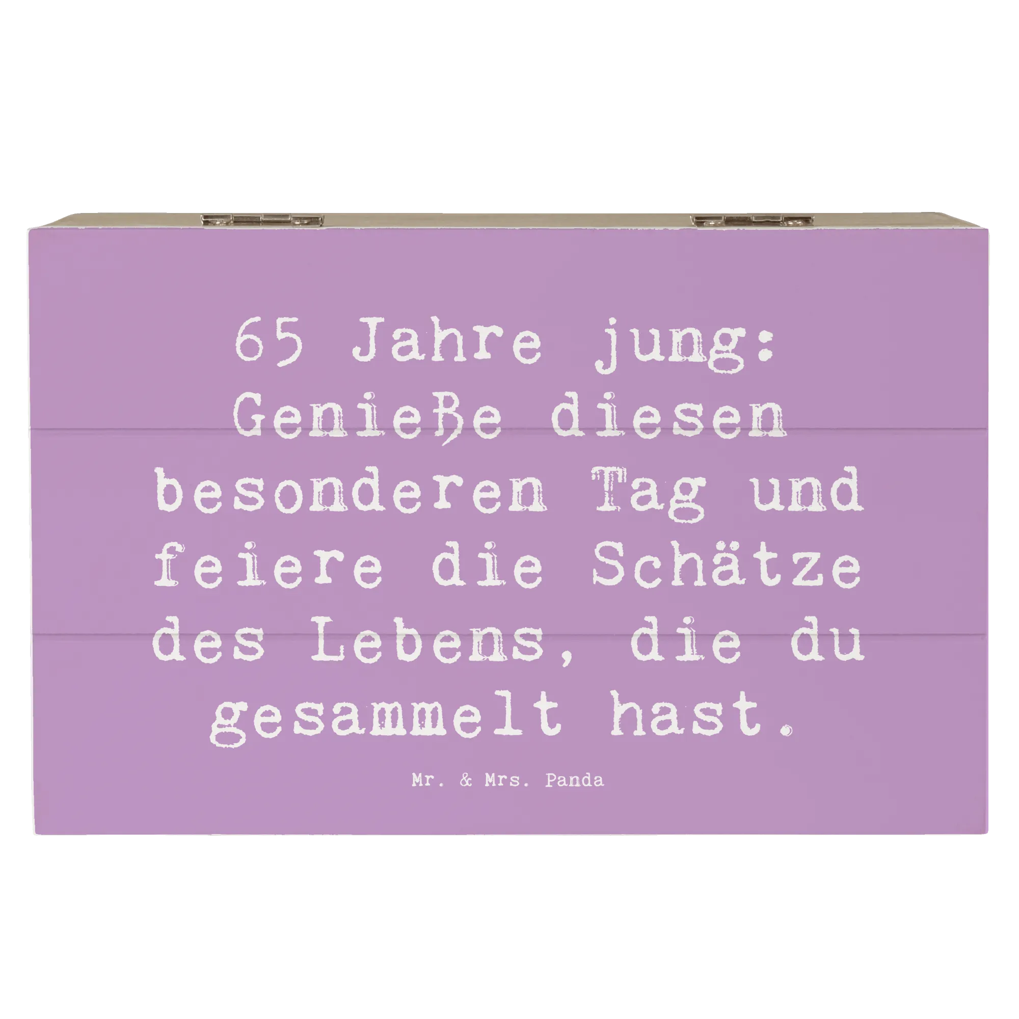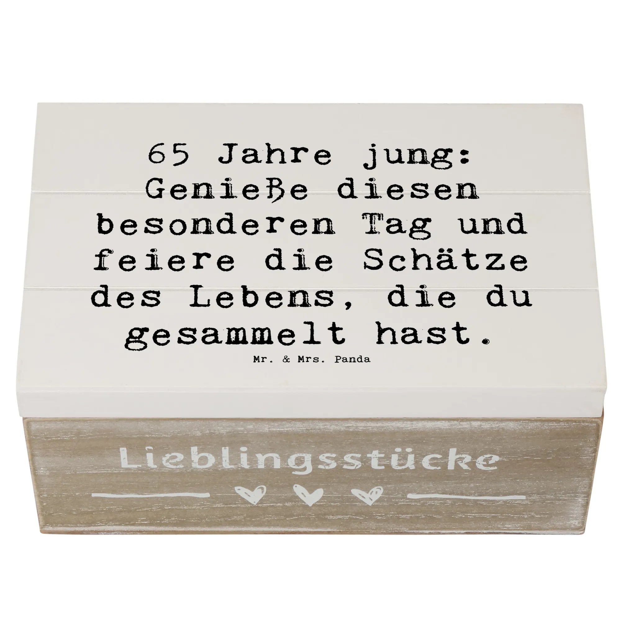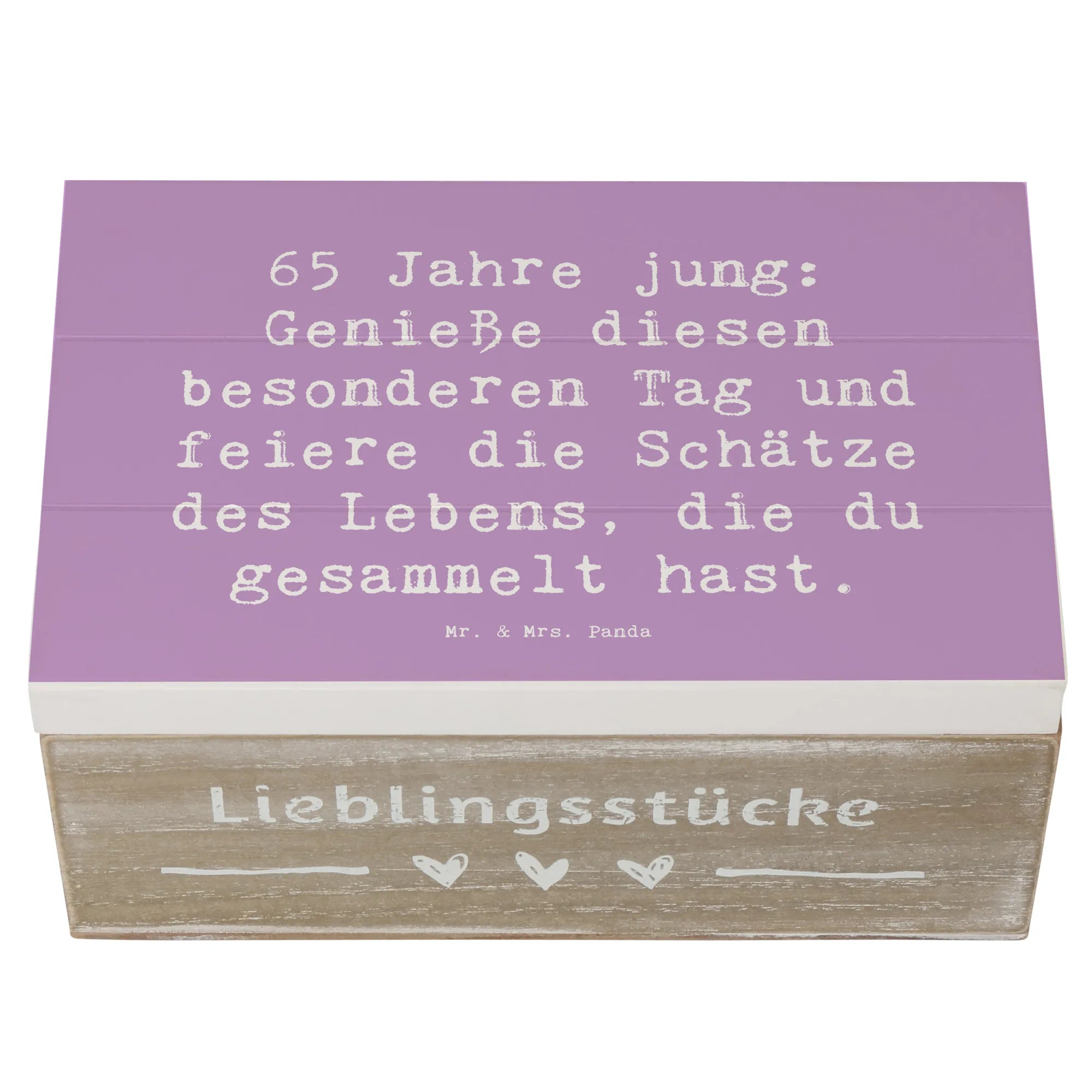 Die wunderschöne Holzkiste zum 65. Geburtstag von Mr. & Mrs. Panda ist das perfekte Geschenk für alle, die diesen besonderen Tag feiern möchten. Mit dem liebevollen Spruch '65 Jahre jung: Genieße diesen besonderen Tag und feiere die Schätze des Lebens, die du gesammelt hast.' bringt sie jedem ein Lächeln ins Gesicht.