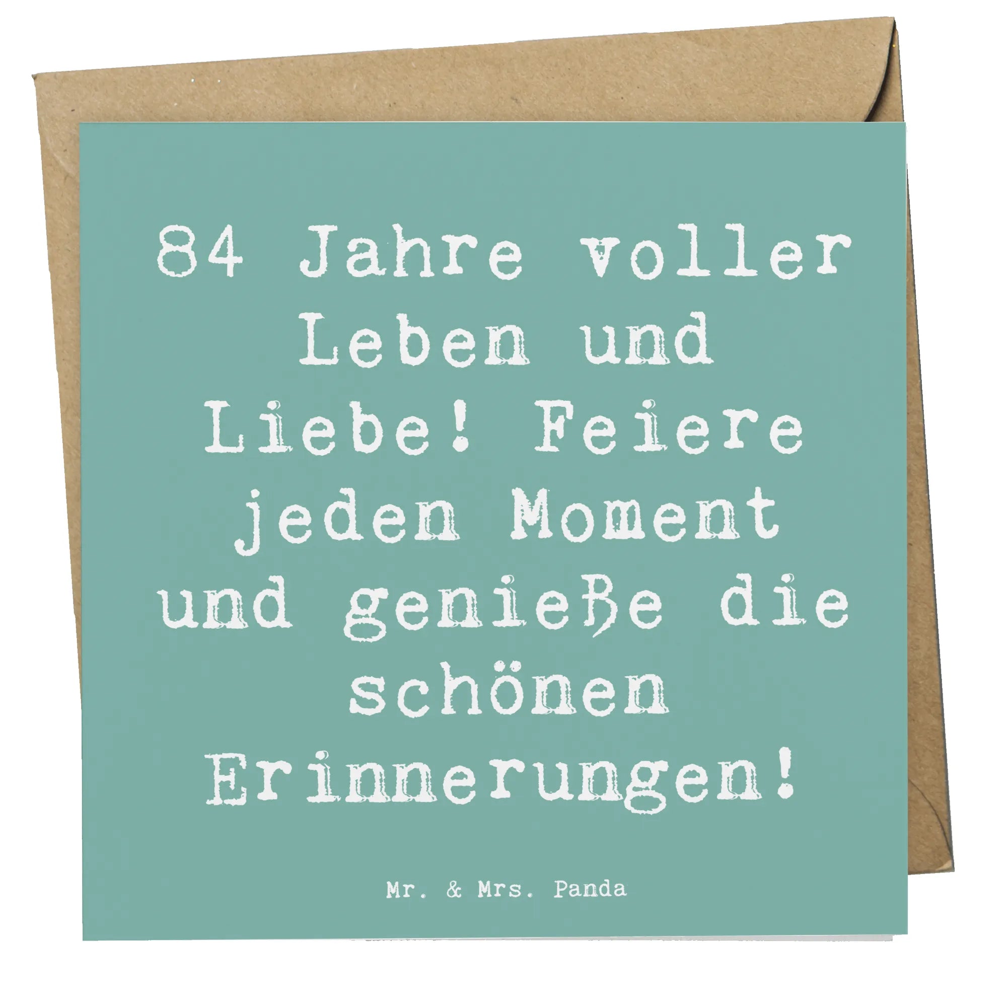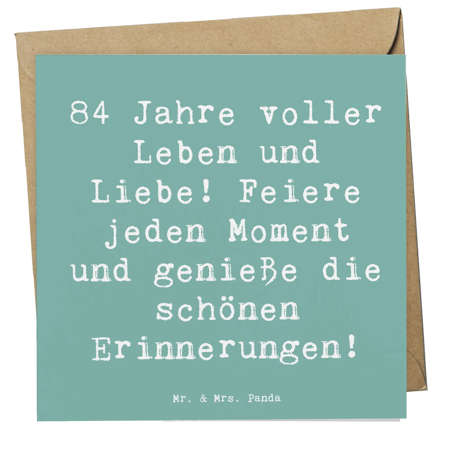 Umso wichtiger ist es, den 84. Geburtstag gebührend zu feiern! Mit dieser Karte von Mr. & Mrs. Panda erzählst du eine Geschichte von Leben, Liebe und gemeinsamen Erinnerungen. Versende deine besten Wünsche und schreibe Geschichtliches, das in Erinnerung bleibt.