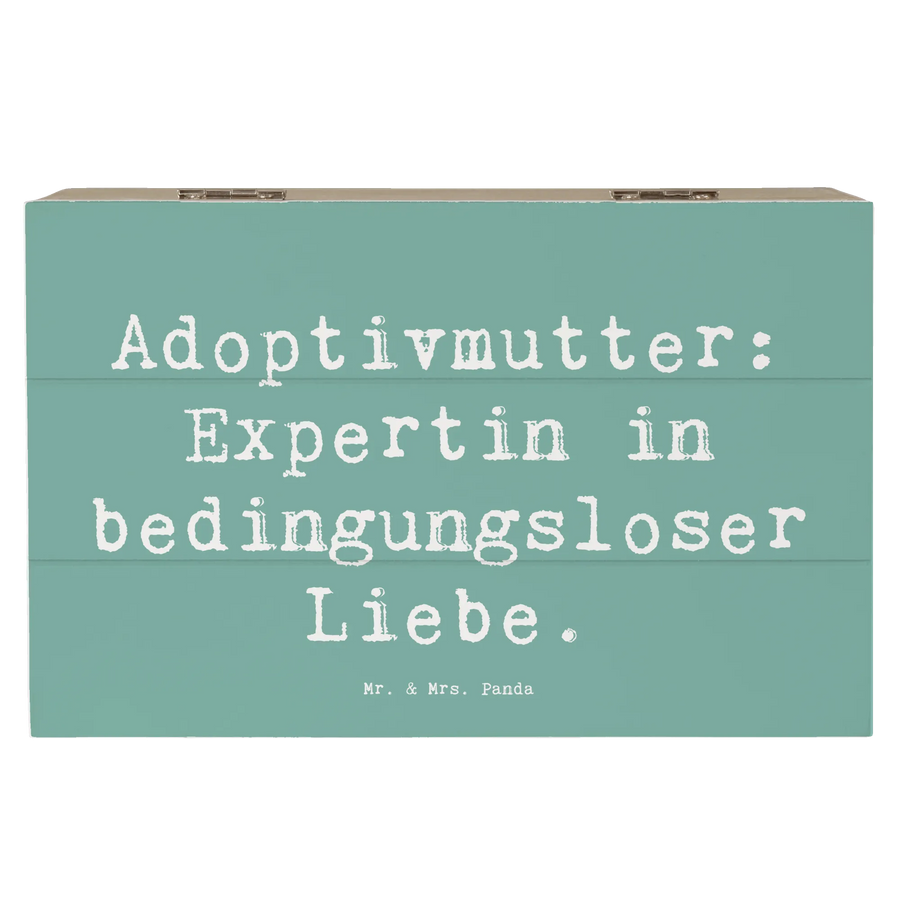 Die Holzkiste ist mit dem liebevollen Motiv "Adoptivmutter: Expertin in bedingungsloser Liebe" ausgestattet, welches aus der beliebten Kollektion Familie & Verwandte stammt. Dieses besondere Design zelebriert die Liebe und Hingabe von Adoptivmüttern, was sie zu einem perfekten Geschenk für alle macht, die diese besondere Art der Mutterschaft wertschätzen.