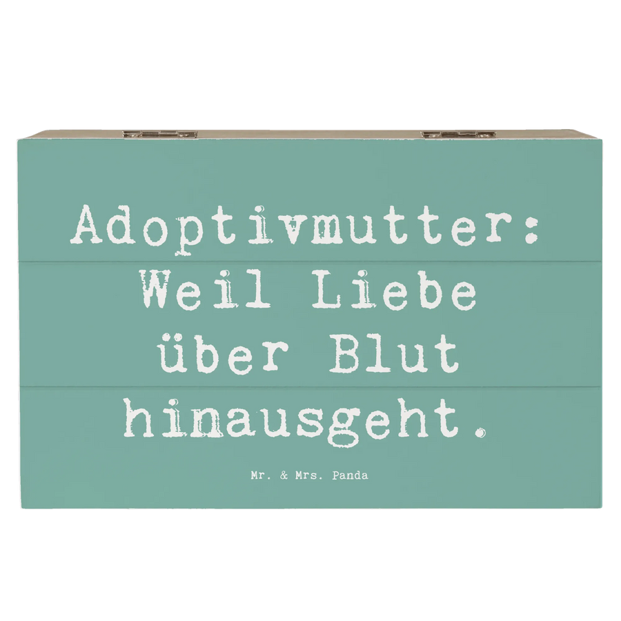 Die wunderschöne Holzkiste von Mr. & Mrs. Panda ist der perfekte Ort für all deine kostbaren Erinnerungen. Mit liebevollen Motiven und dem Spruch 'Adoptivmutter: Weil Liebe über Blut hinausgeht.' ist diese Kiste nicht nur ein Aufbewahrungsort, sondern auch ein Symbol für die ganz besondere Verbindung zu Adoptivmüttern.