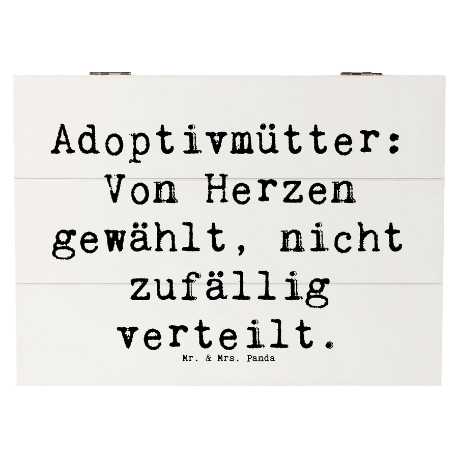 Die wunderschöne Holzkiste von Mr. & Mrs. Panda ist das perfekte Geschenk für Adoptivmütter und eine tolle Art, Dankbarkeit und Liebe zu zeigen. Mit einem liebevollen Design und dem Motto 'Adoptivmütter: Von Herzen gewählt, nicht zufällig verteilt.' zelebriert diese Kiste die besondere Verbindung zwischen Adoptivmüttern und ihren Kindern.
