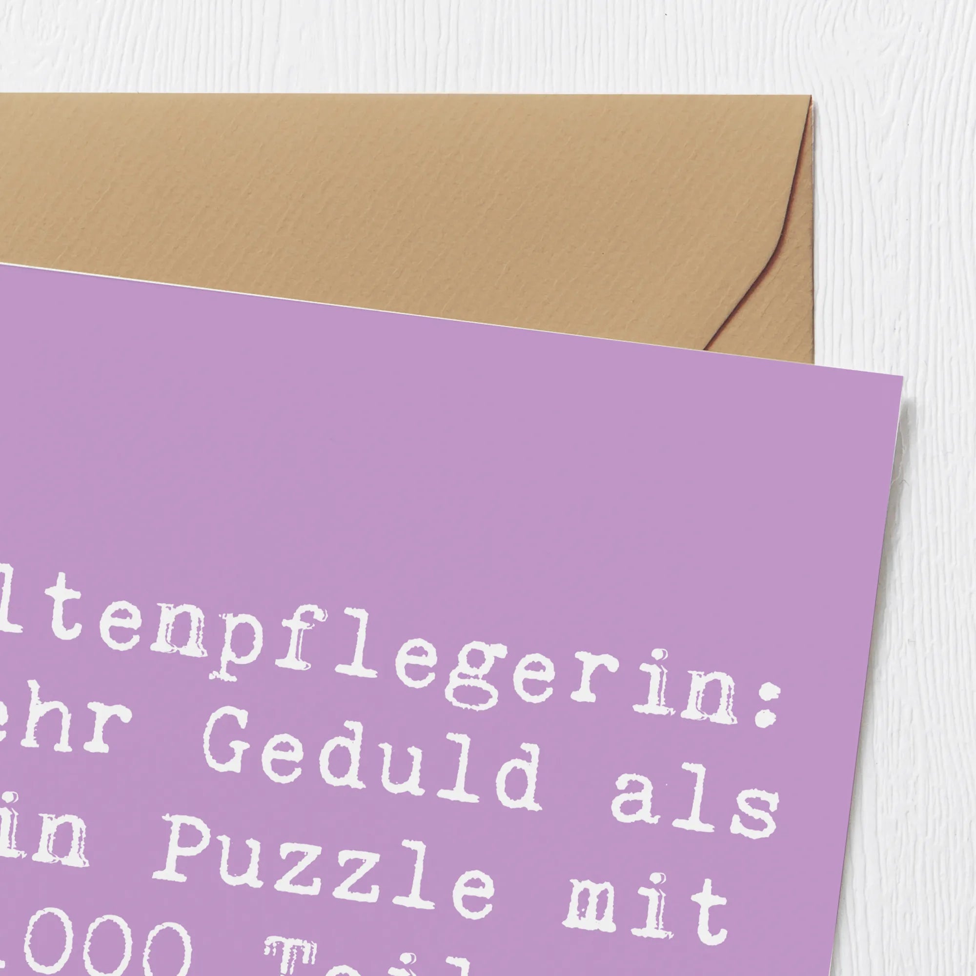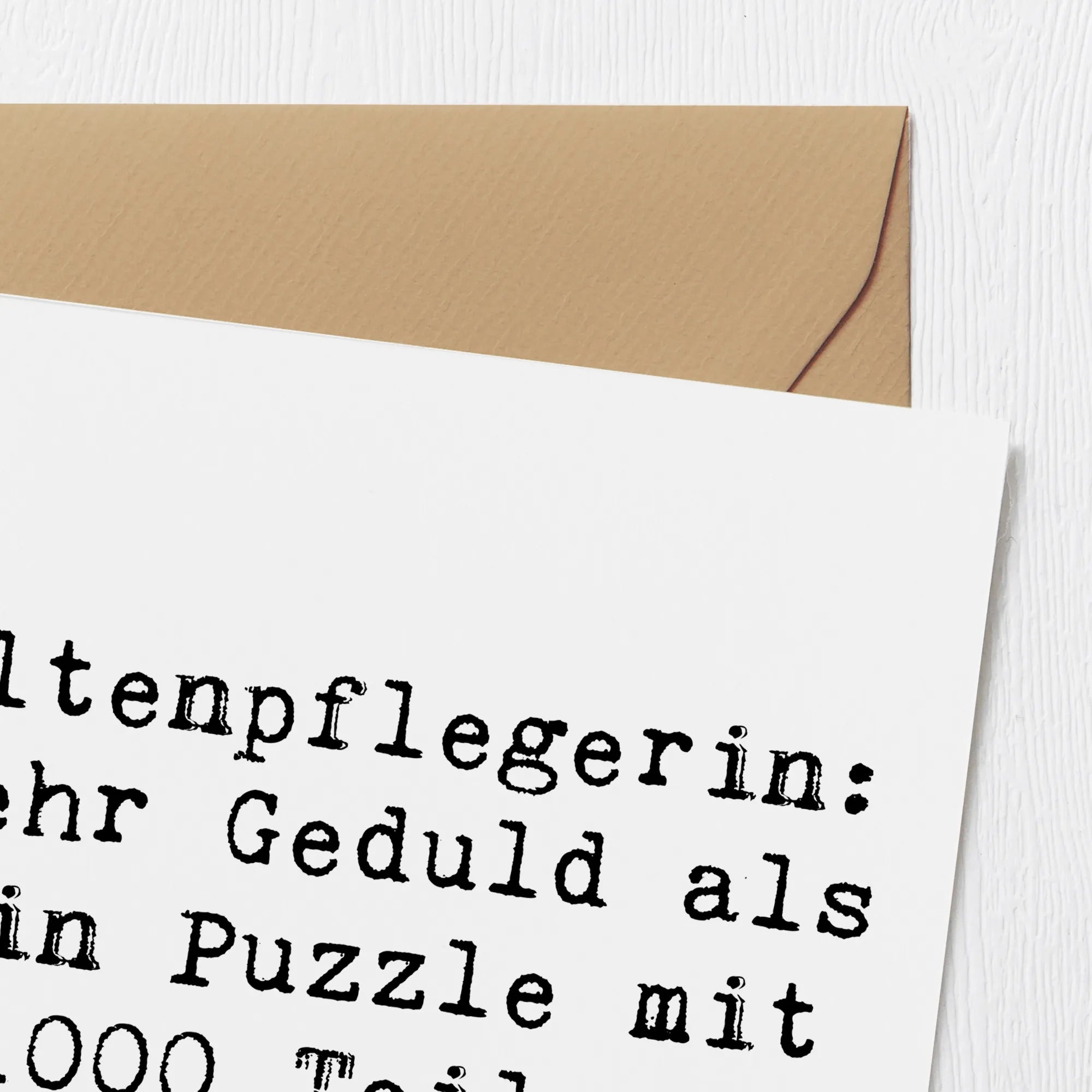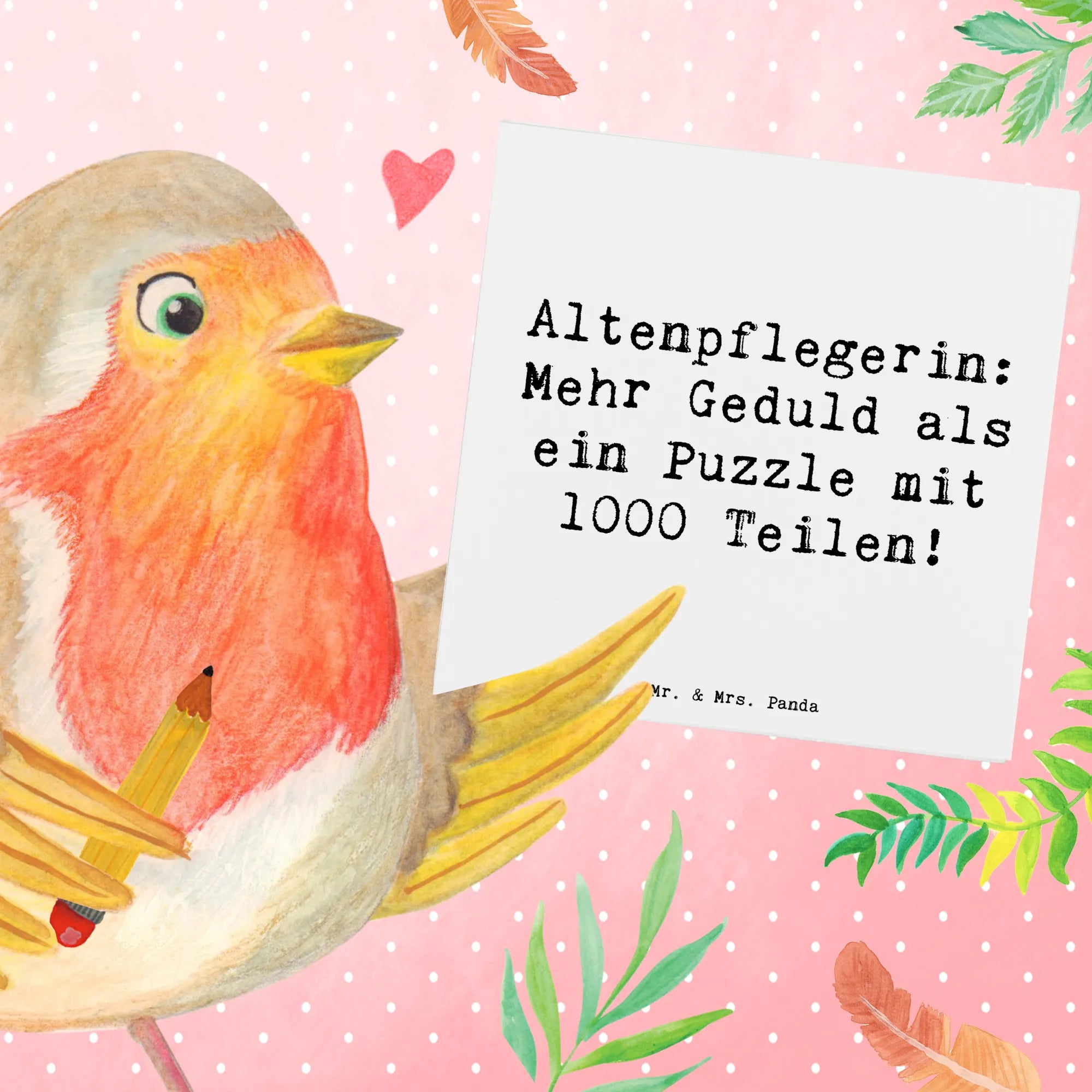 Die Deluxe Karte "Altenpflegerin: Mehr Geduld als ein Puzzle mit 1000 Teilen!" aus der Berufe-Kollektion von Mr. & Mrs. Panda ist das perfekte Geschenk für alle, die in der Altenpflege tätig sind oder sich mit dieser wundervollen Berufung identifizieren.