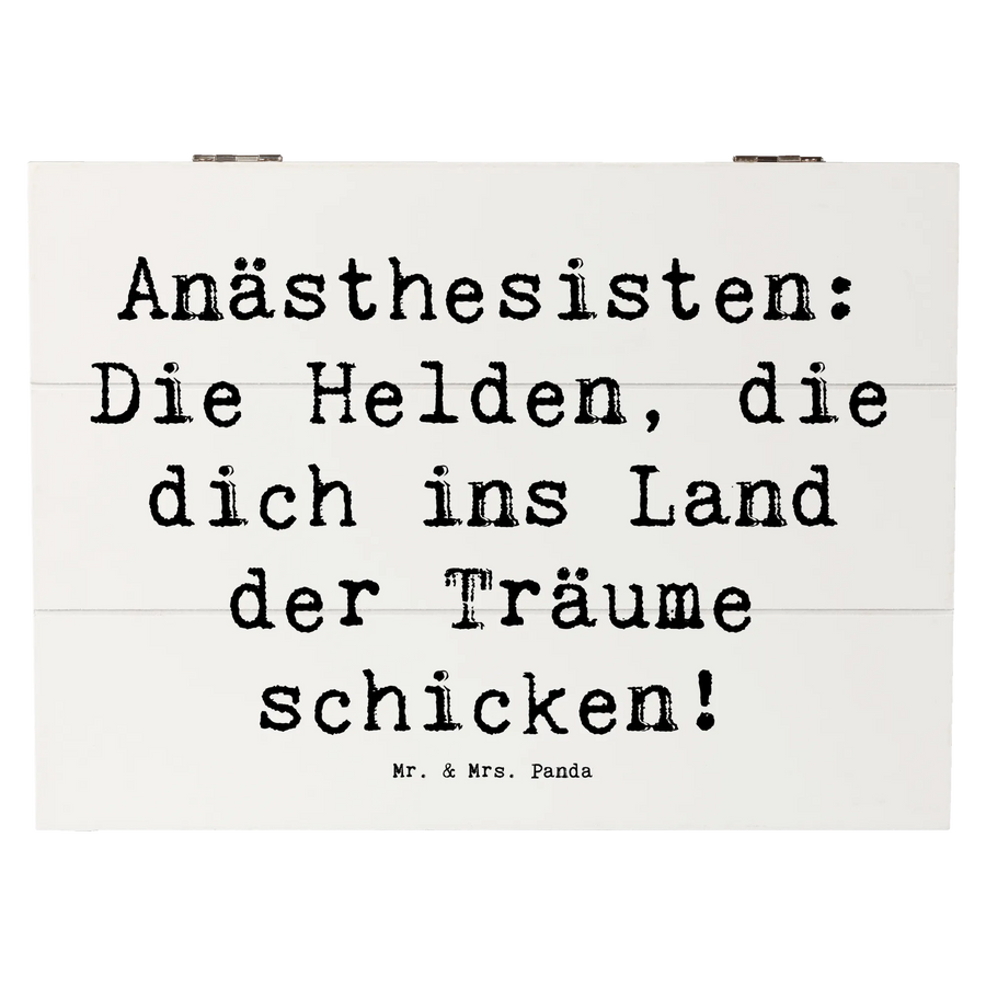 Entdecke die perfekte Holzkiste für alle Anästhesisten und die, die es werden wollen! Diese wunderschöne Holzkiste von Mr. & Mrs. Panda ist nicht nur ein praktischer Aufbewahrungsort, sondern auch ein liebevolles Geschenk für jene, die die Gabe haben, Menschen ins Land der Träume zu schicken. Mit dem Slogan 'Anästhesisten: Die Helden, die dich ins Land der Träume schicken!' ziert die Kiste ein liebevolles Design, das sicher ein Lächeln zaubert.