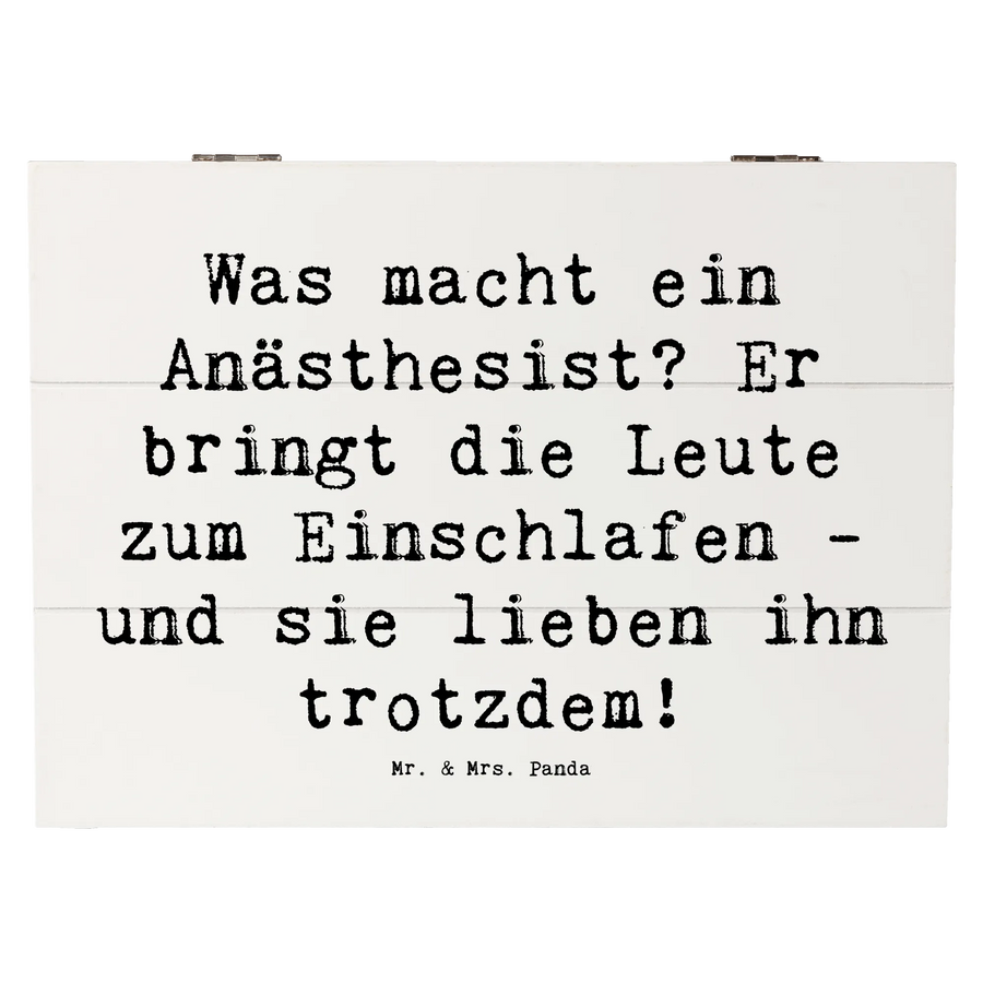 Finde deine persönliche Schatzkiste mit dem Motiv "Anästhesist" und freue dich über ein praktisches und gleichzeitig schönes Geschenk. Entdecke die kreative Berufe Kollektion von Mr. & Mrs. Panda und finde weitere wundervolle Produkte, die mit viel Liebe gestaltet wurden.