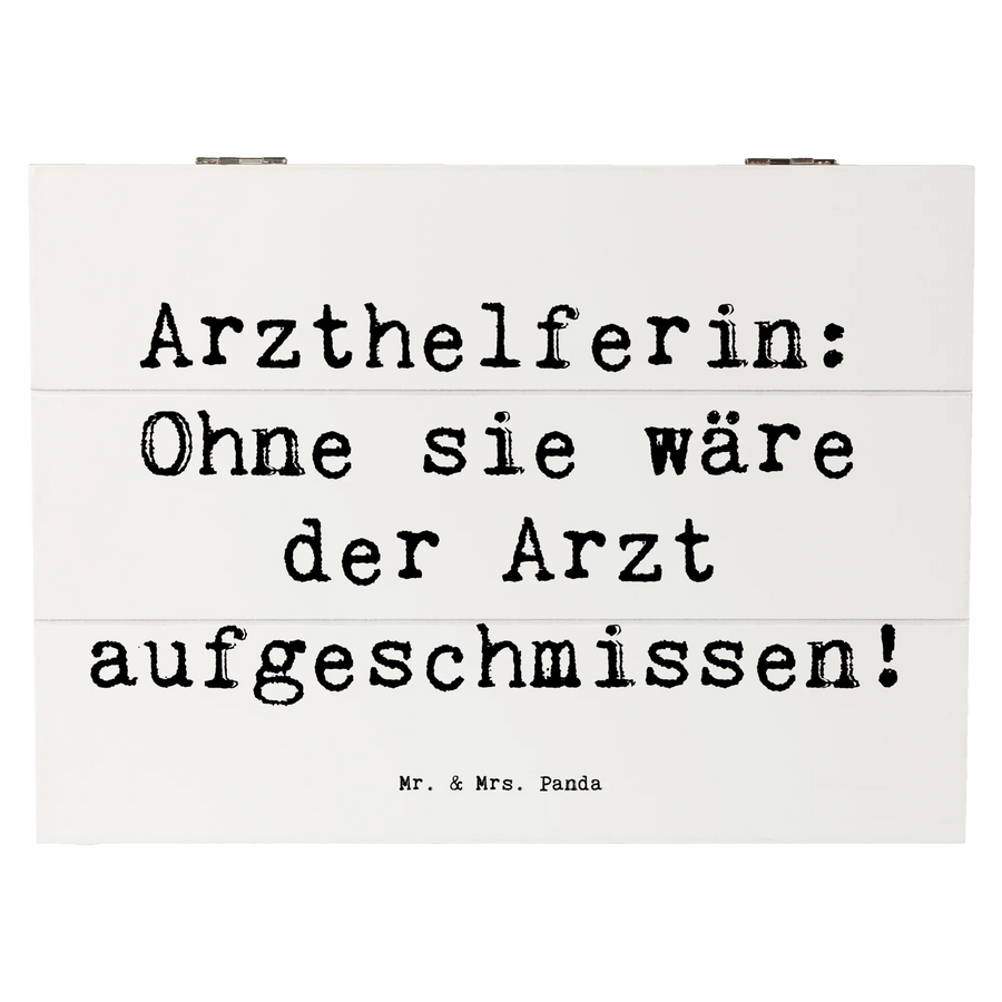 Schenke jemandem die Möglichkeit, ihre Erinnerungen in dieser einzigartigen Kiste aufzubewahren, und zaubere ein Lächeln auf ihr Gesicht! Diese Holzkiste ist nicht nur ein praktisches Accessoire, sondern auch ein liebevolles Geschenk, das immer in Erinnerung bleiben wird. Entscheide dich für die Holzkiste Arzthelferin von Mr. & Mrs. Panda und mach deinen Liebsten eine Freude mit einem Hauch von Kreativität und Herz.
