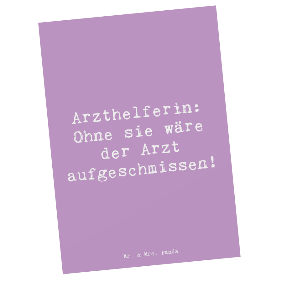 Entdecke die bezaubernde Postkarte "Arzthelferin: Ohne sie wäre der Arzt aufgeschmissen!" aus der einzigartigen Berufe-Kollektion von Mr. & Mrs. Panda. Diese liebevoll gestaltete Karte ist das perfekte Geschenk für all jene, die sich in der Welt der Medizin engagieren.