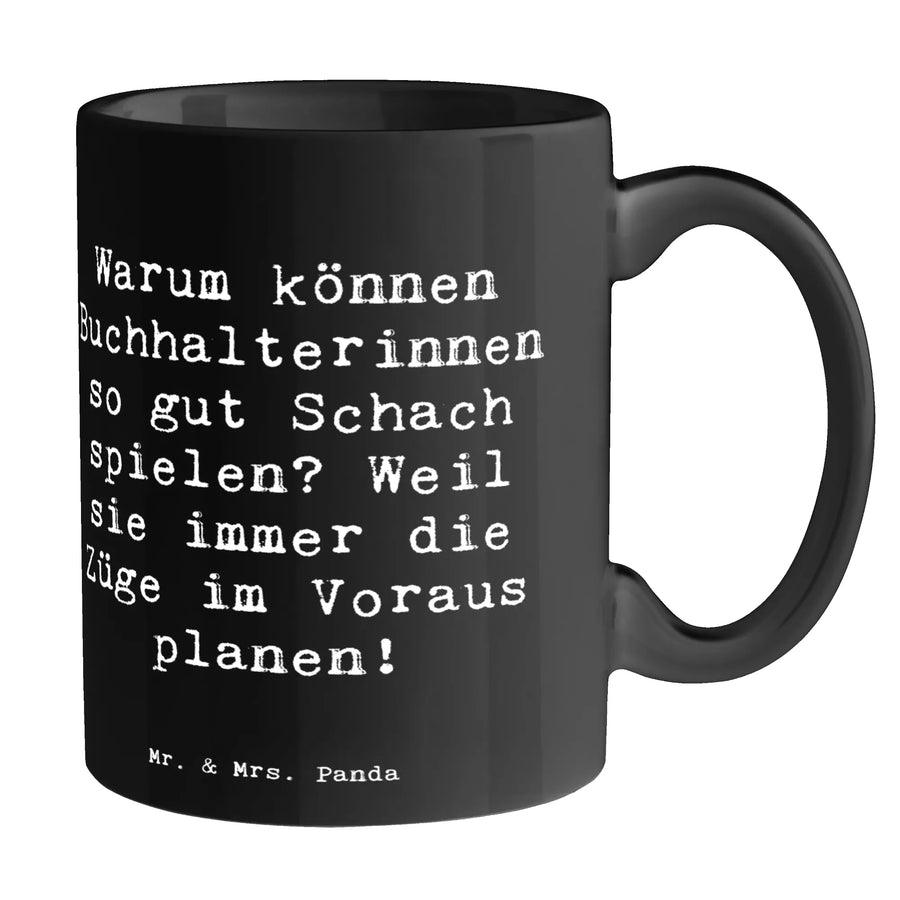 Tasse Spruch Warum können Buchhalterinnen so gut Schach spielen? Weil sie immer die Züge im Voraus planen! - Schwarz
