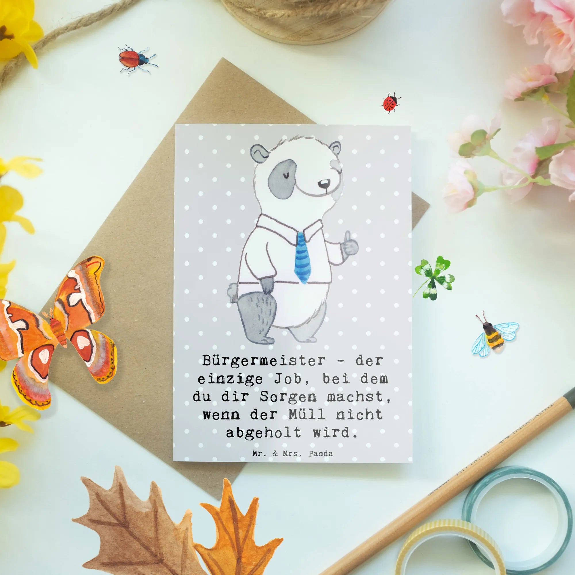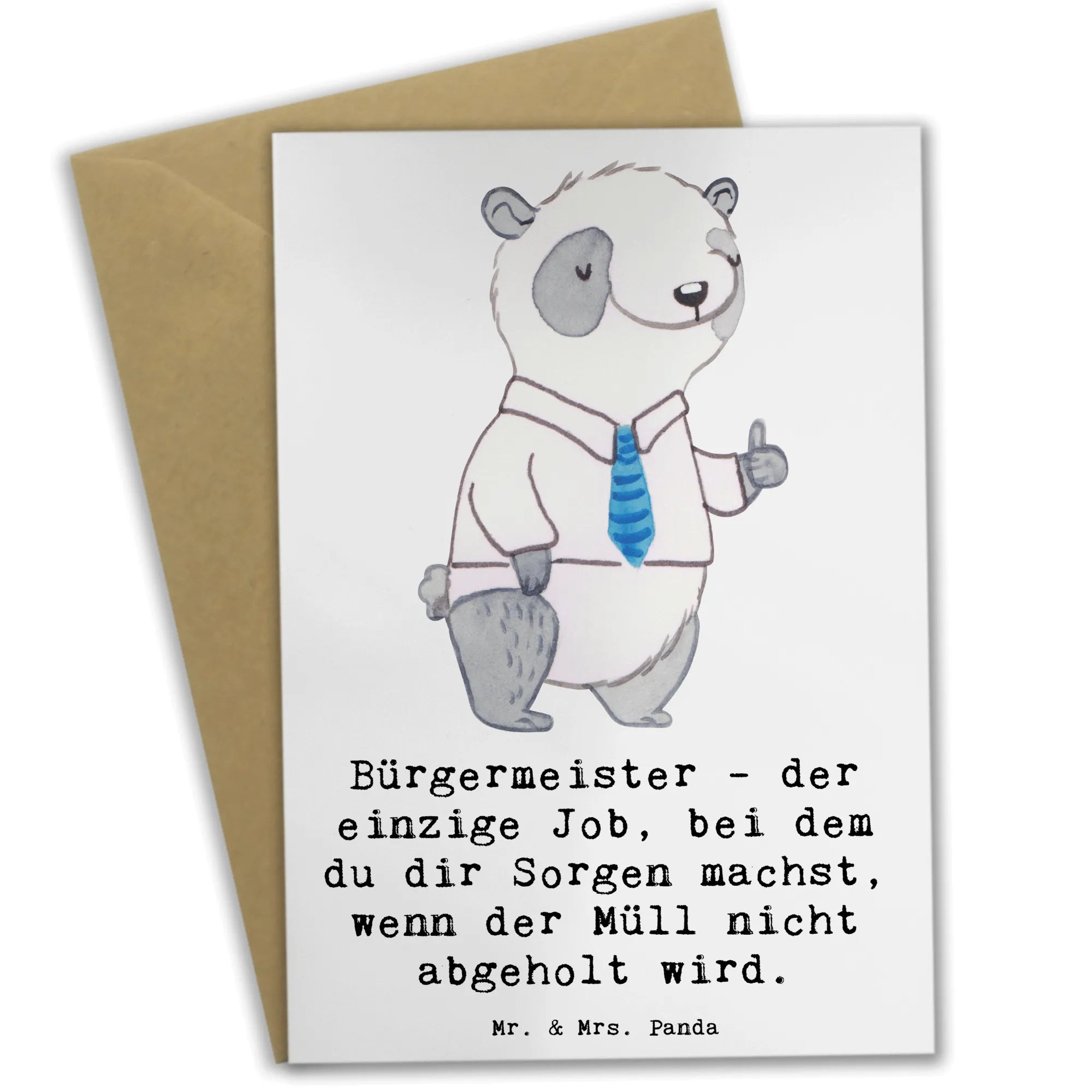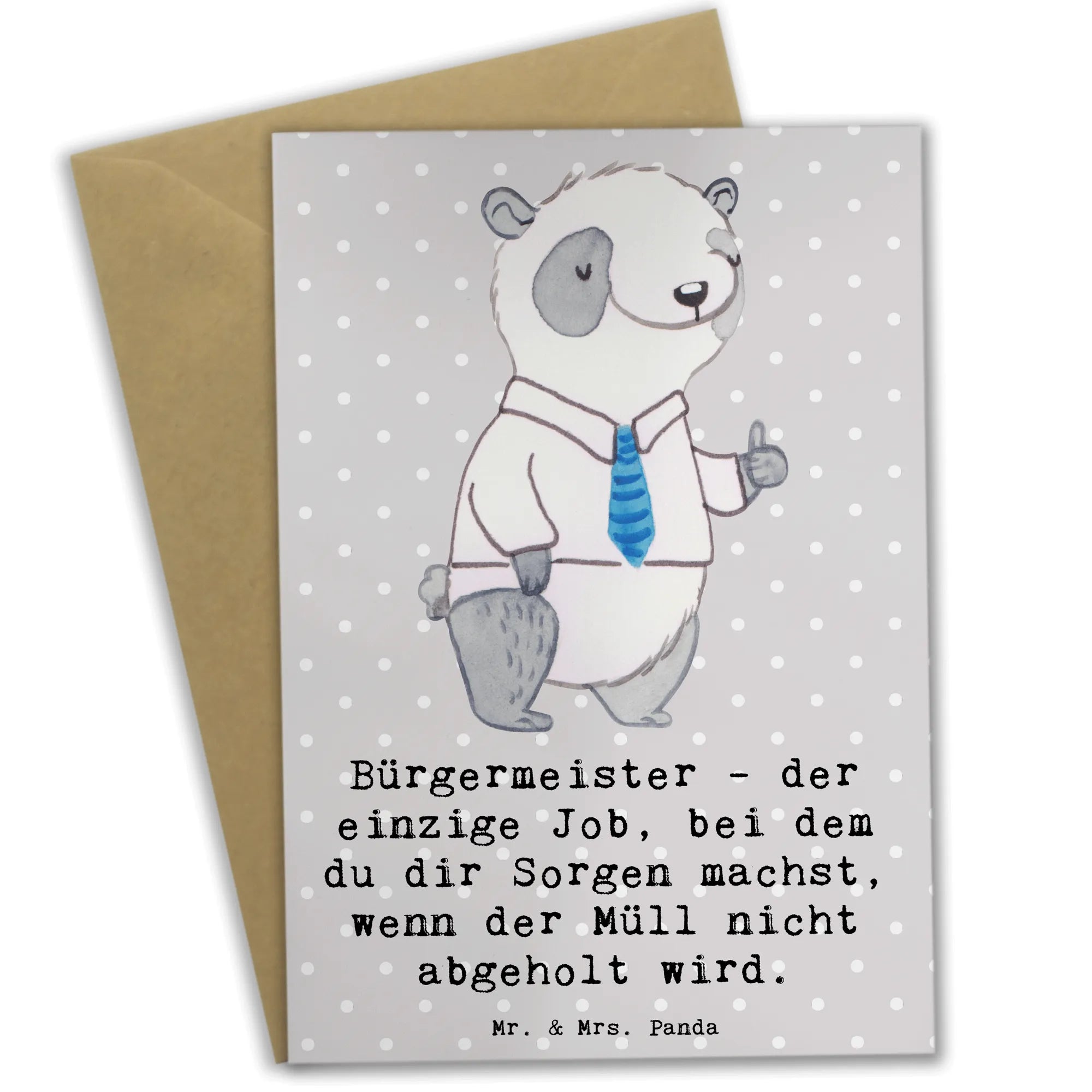 Die Grußkarte 'Bürgermeister' aus der Kollektion Berufe von Mr. & Mrs. Panda ist das ideale Geschenk für alle, die ihren Beruf mit Humor und Charme präsentieren möchten. Mit dem Spruch: 'Bürgermeister - der einzige Job, bei dem du dir Sorgen machst, wenn der Müll nicht abgeholt wird.', sorgt diese Karte garantiert für ein Lächeln. Der edel gestaltete Karton in einem wunderschönen Grau Pastell macht diese Karte nicht nur zu einem Blickfang, sondern vermittelt auch Professionalität und Stil.