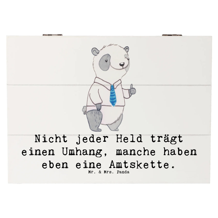 Die Holzkiste "Bürgermeister" aus der Berufe-Kollektion von Mr. & Mrs. Panda ist das perfekte Geschenk für alle, die in der Welt der Verwaltung und Gemeinschaftsarbeit tätig sind. Mit dem liebevoll gestalteten Motiv und dem eingängigen Spruch "Nicht jeder Held trägt einen Umhang, manche haben eben eine Amtskette" wird diese Kiste zu einem ganz besonderen Aufbewahrungsort für wertvolle Erinnerungen.