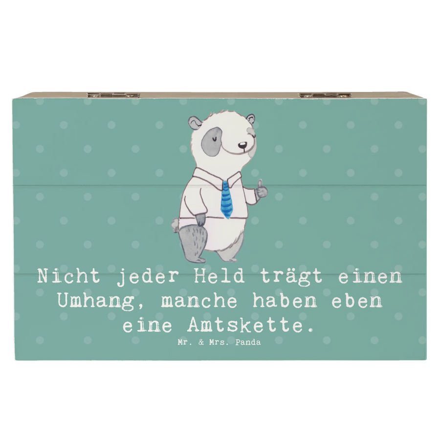 Die Holzkiste "Bürgermeister" aus der Berufe-Kollektion von Mr. & Mrs. Panda ist das perfekte Geschenk für alle, die in der Welt der Verwaltung und Gemeinschaftsarbeit tätig sind. Mit dem liebevoll gestalteten Motiv und dem eingängigen Spruch "Nicht jeder Held trägt einen Umhang, manche haben eben eine Amtskette" wird diese Kiste zu einem ganz besonderen Aufbewahrungsort für wertvolle Erinnerungen.