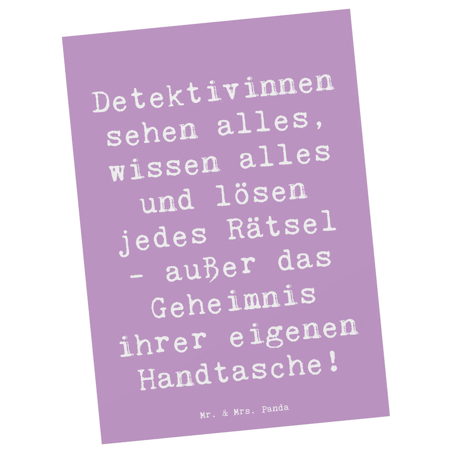 Postkarte Spruch Detektivinnen sehen alles, wissen alles und lösen jedes Rätsel - außer das Geheimnis ihrer eigenen Handtasche! - Lavendeltraum