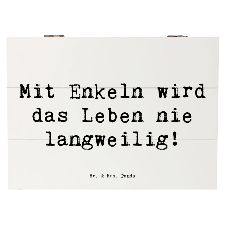 Die wunderschöne Holzkiste von Mr. & Mrs. Panda ist das perfekte Geschenk für alle Großeltern, die die besonderen Momente mit ihren Enkelkindern festhalten möchten. Sie ist nicht nur eine praktische Aufbewahrungsbox, sondern auch eine Erinnerungskiste, die mit Liebe gestaltet wurde. Der coole Spruch "Mit Enkeln wird das Leben nie langweilig!" bringt festliche Freude und macht diese Kiste zum idealen Ort, um all die wertvollen Schätze und Erinnerungen zu sammeln, die das Familienleben so bereichern.