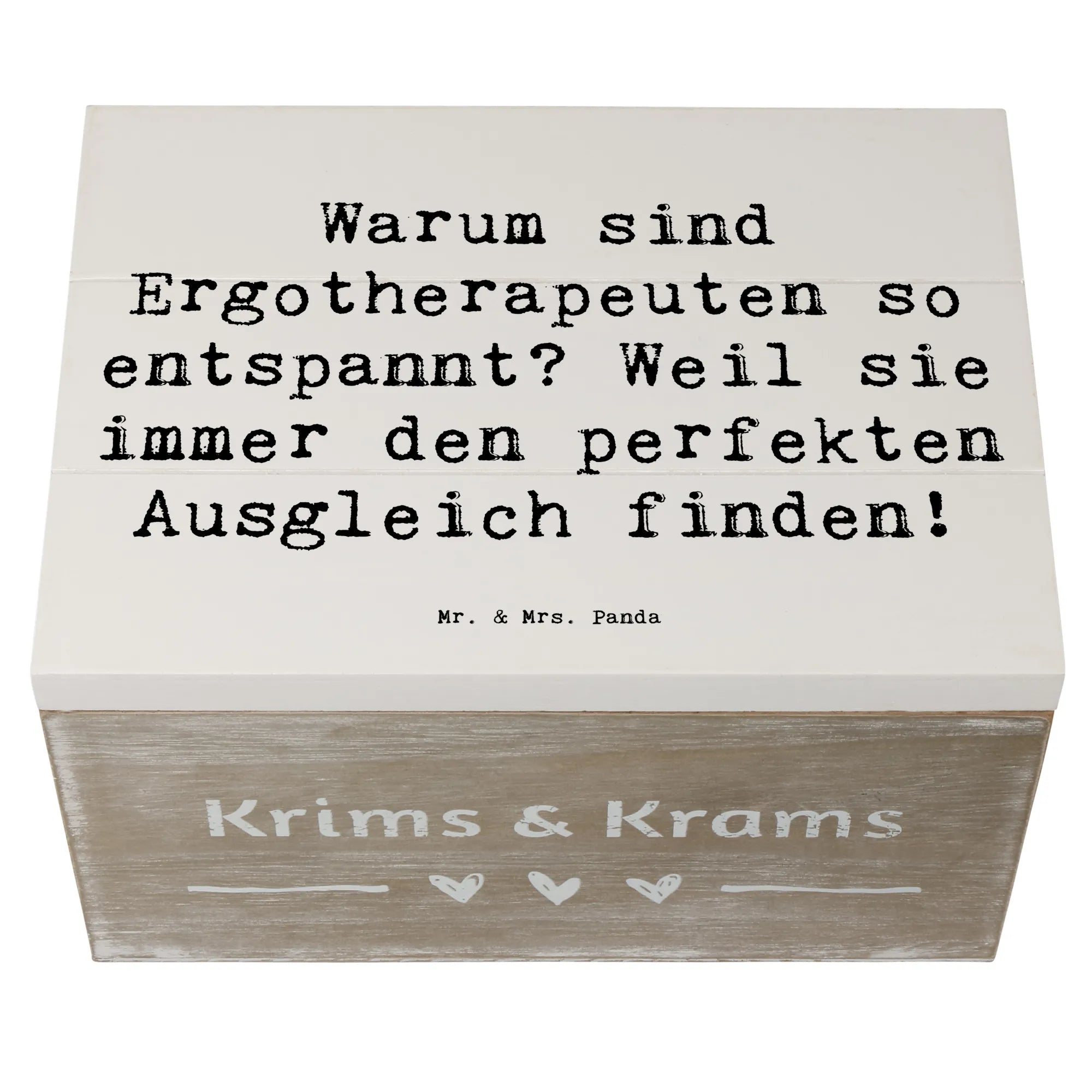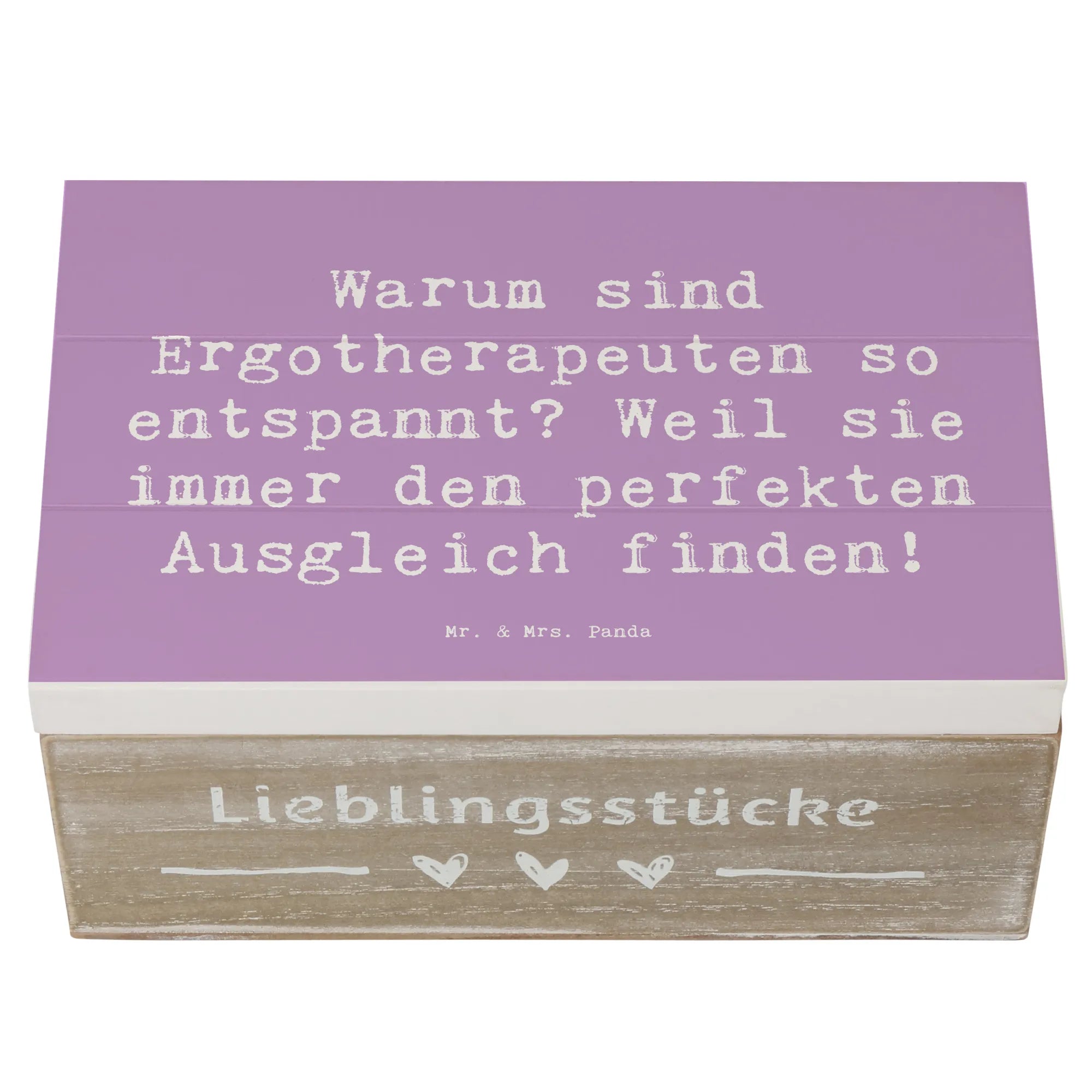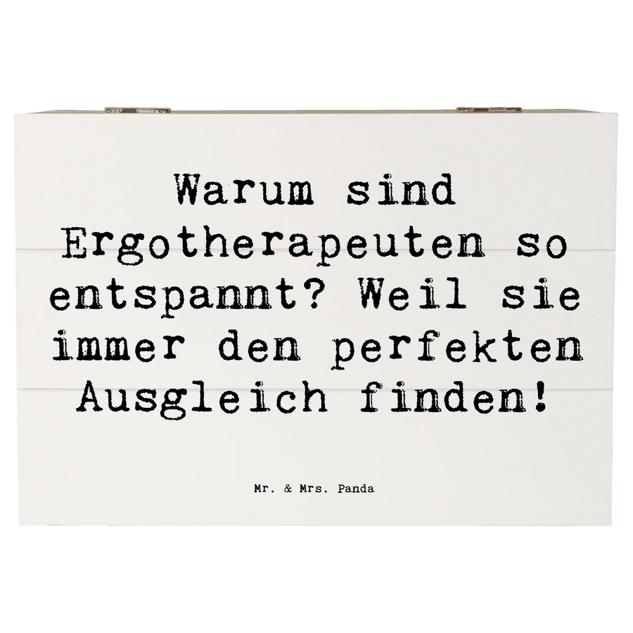 Entdecke die zauberhafte Holzkiste für Ergotherapeuten von Mr. & Mrs. Panda – das perfekte Geschenk für alle, die diese wunderbare Berufung ausüben! Diese wunderschöne Erinnerungskiste ist bedruckt mit einem charmanten Spruch: "Warum sind Ergotherapeuten so entspannt? Weil sie immer den perfekten Ausgleich finden!"
