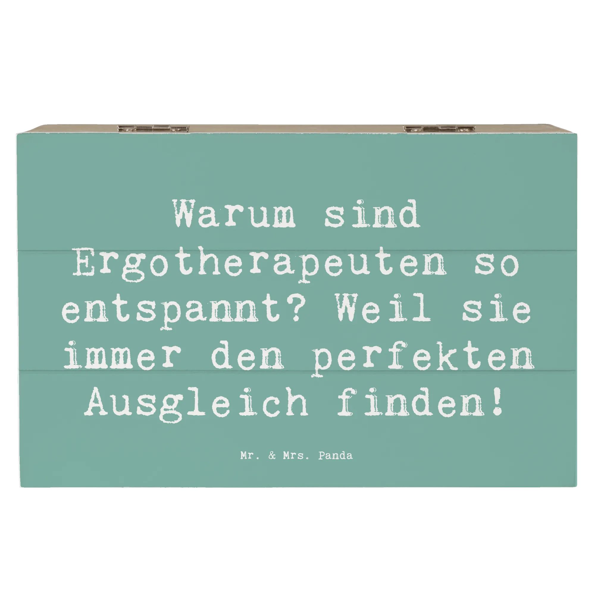 In der Welt der Ergotherapie ist der perfekte Ausgleich von großer Bedeutung – und genau das ist der Grund, warum Ergotherapeuten so entspannt wirken! Die Kiste ist mit dem charmanten Spruch "Warum sind Ergotherapeuten so entspannt? Weil sie immer den perfekten Ausgleich finden!" versehen und bringt ein Lächeln in den Alltag.