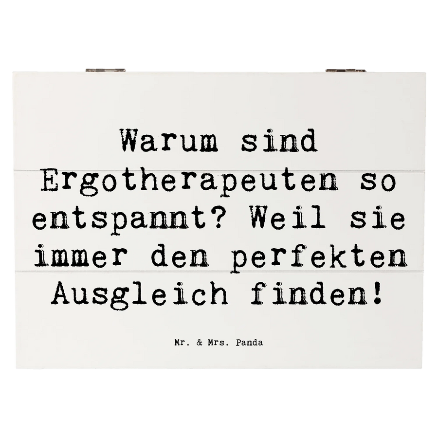 Entdecke die zauberhafte Holzkiste für Ergotherapeuten von Mr. & Mrs. Panda – das perfekte Geschenk für alle, die diese wunderbare Berufung ausüben! Diese wunderschöne Erinnerungskiste ist bedruckt mit einem charmanten Spruch: "Warum sind Ergotherapeuten so entspannt? Weil sie immer den perfekten Ausgleich finden!"