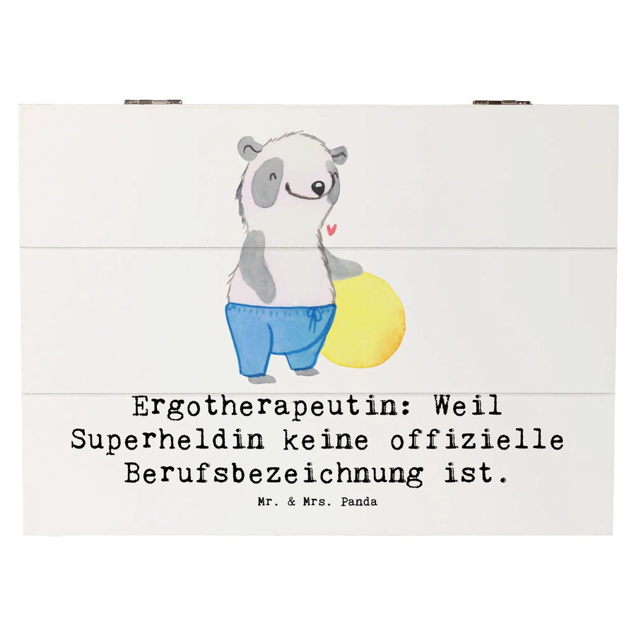 Die wunderschöne Holzkiste mit dem Motiv 'Ergotherapeutin: Weil Superheldin keine offizielle Berufsbezeichnung ist.' von Mr. & Mrs. Panda ist das perfekte Geschenk für alle Ergos! Diese charmante Kiste ist nicht nur ein optisches Highlight, sondern auch ein nützlicher Aufbewahrungsort für all die wertvollen Erinnerungen und Schätze, die das Leben bereithält.