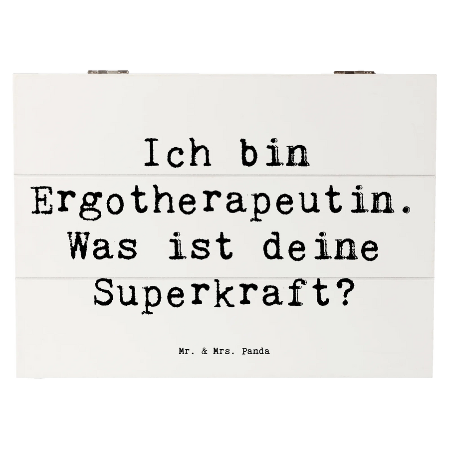 Die wunderschöne Holzkiste von Mr. & Mrs. Panda ist der perfekte Begleiter für alle Ergotherapeuten und Ergotherapeutinnen! Mit dem liebevollen Spruch "Ich bin Ergotherapeutin. Was ist deine Superkraft?" besticht diese Erinnerungskiste nicht nur durch ihr charmantes Design, sondern auch durch ihre Funktionalität.