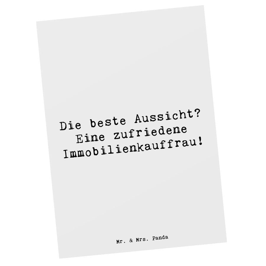 Postkarte Spruch Die beste Aussicht? Eine zufriedene Immobilienkauffrau! - Weiß