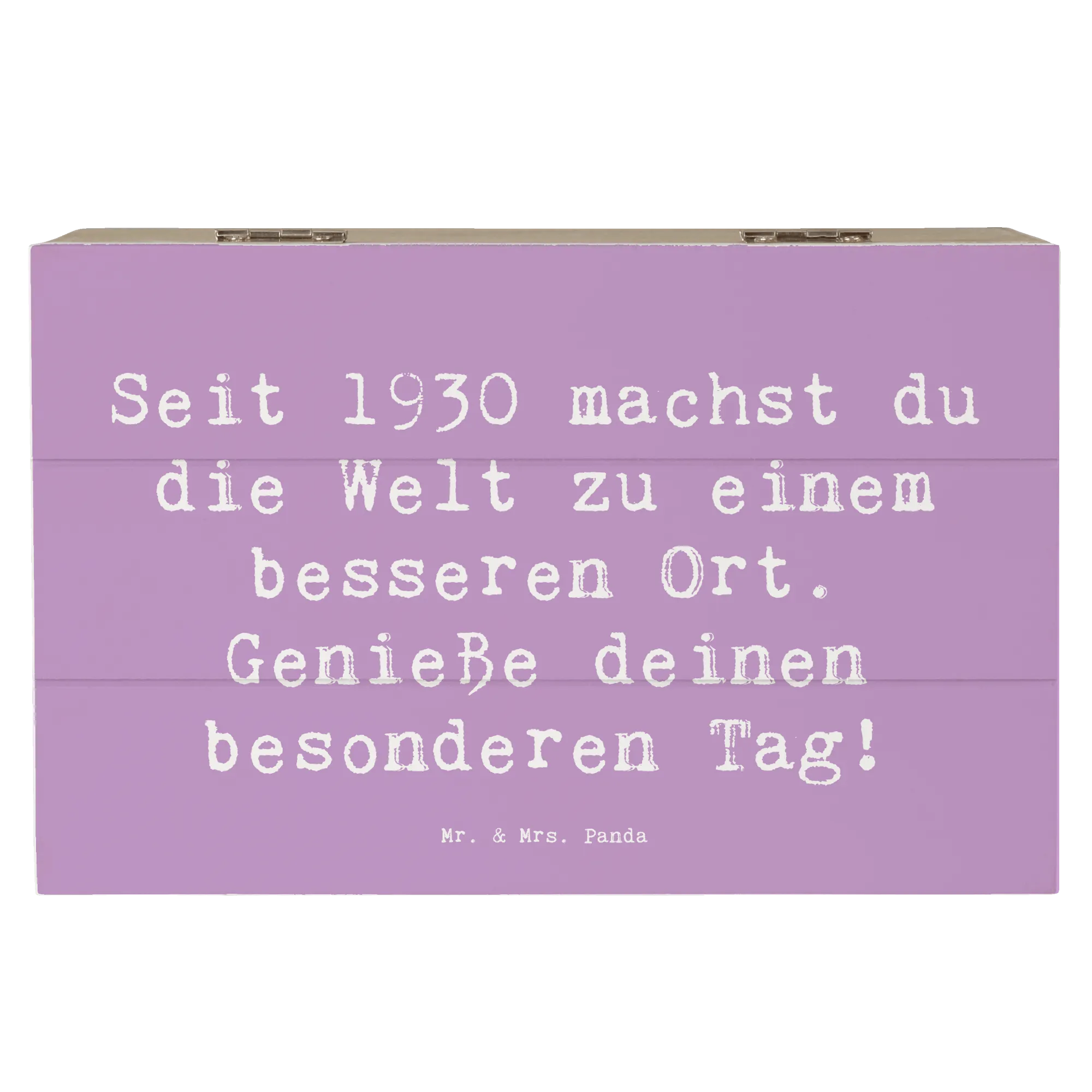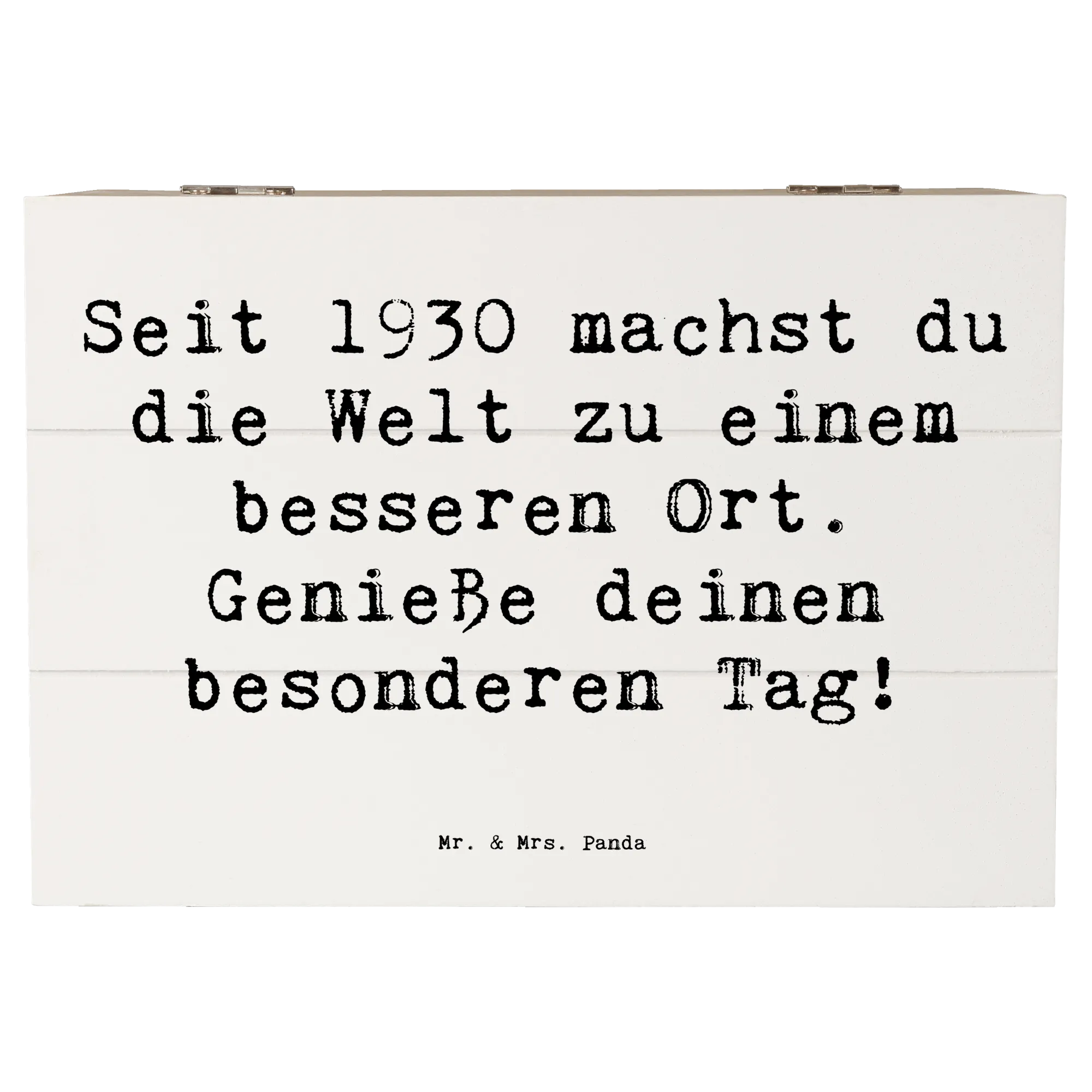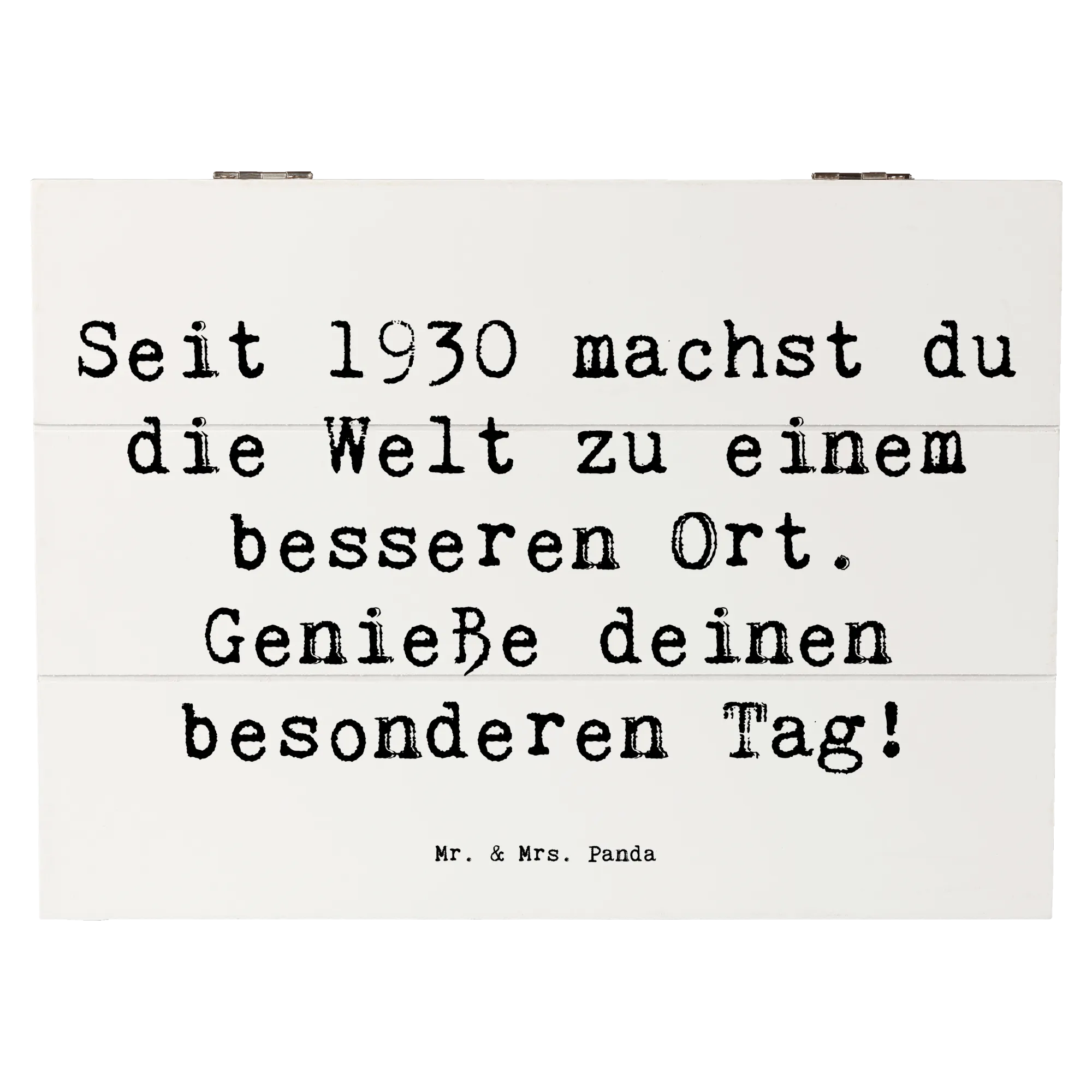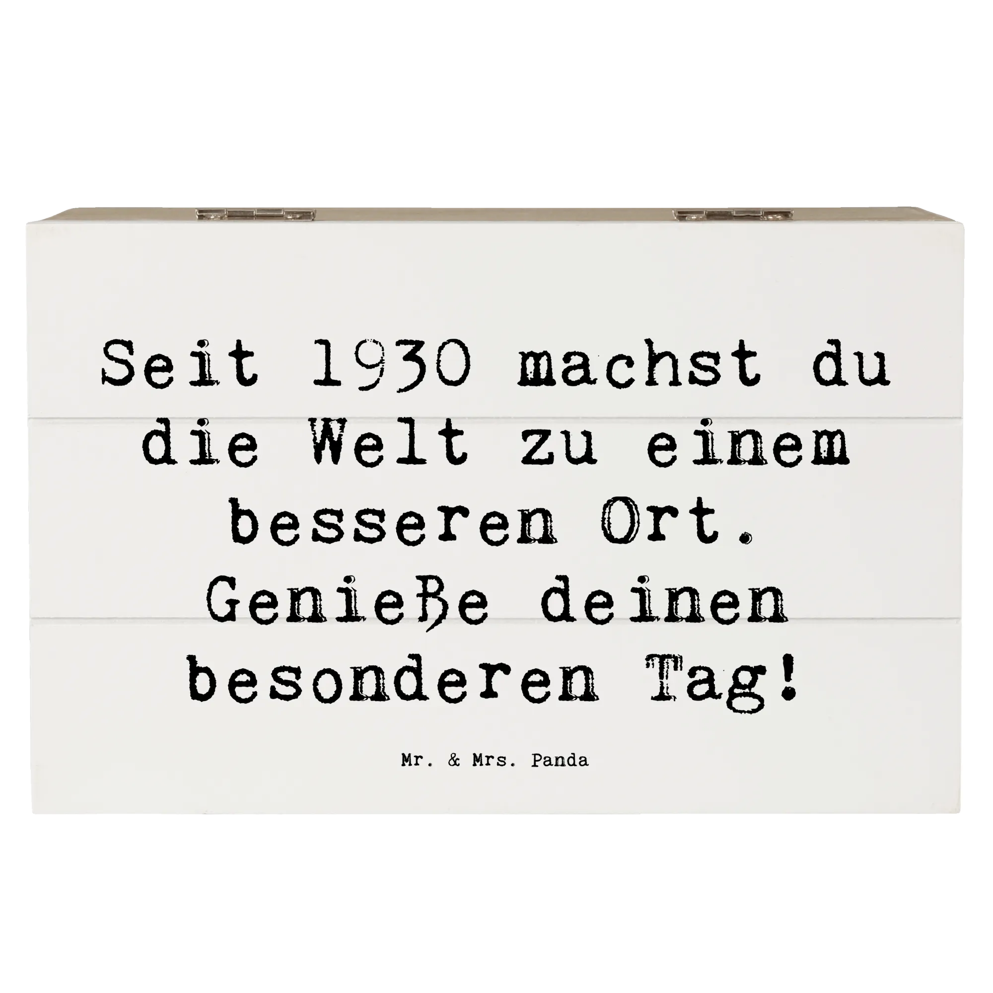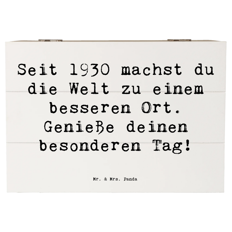 Die wunderschöne Holzkiste von Mr. & Mrs. Panda ist das perfekte Geschenk für jeden Geburtstagsjubilar, der im Jahr 1930 das Licht der Welt erblickt hat. Mit einem liebevollen Spruch, der besagt: 'Seit 1930 machst du die Welt zu einem besseren Ort. Genieße deinen besonderen Tag!', wird diese Erinnerungskiste bereits beim Auspacken für Freude sorgen.
