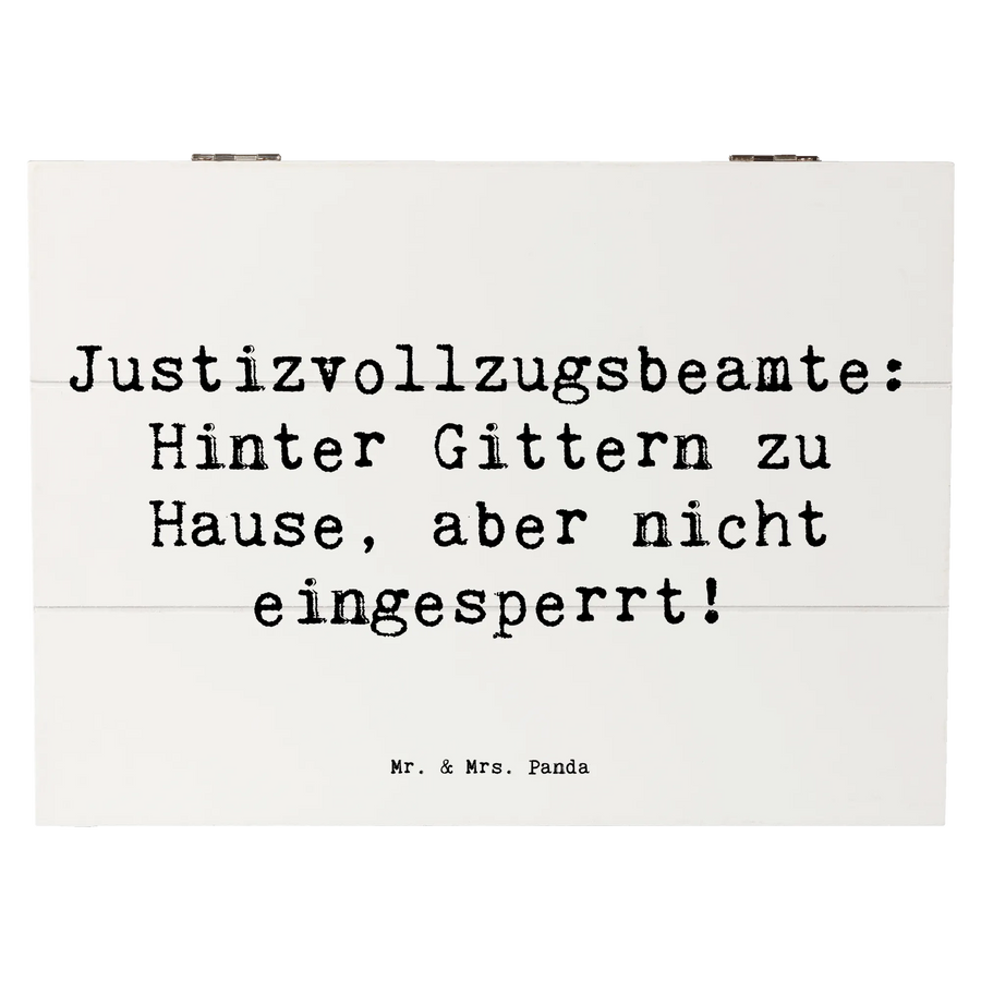 Die wunderschöne Holzkiste von Mr. & Mrs. Panda mit dem liebevollen Motiv "Justizvollzugsbeamte: Hinter Gittern zu Hause, aber nicht eingesperrt!" ist das perfekte Geschenk für alle, die in diesem Beruf tätig sind oder sich für ihn begeistern. Ob zum Berufsabschied, als Ehrung zum Jubiläum oder einfach als süße Überraschung für einen Kollegen – diese Kiste ist ein echter Hingucker und bietet viel Platz für persönliche Schätze und Erinnerungen.