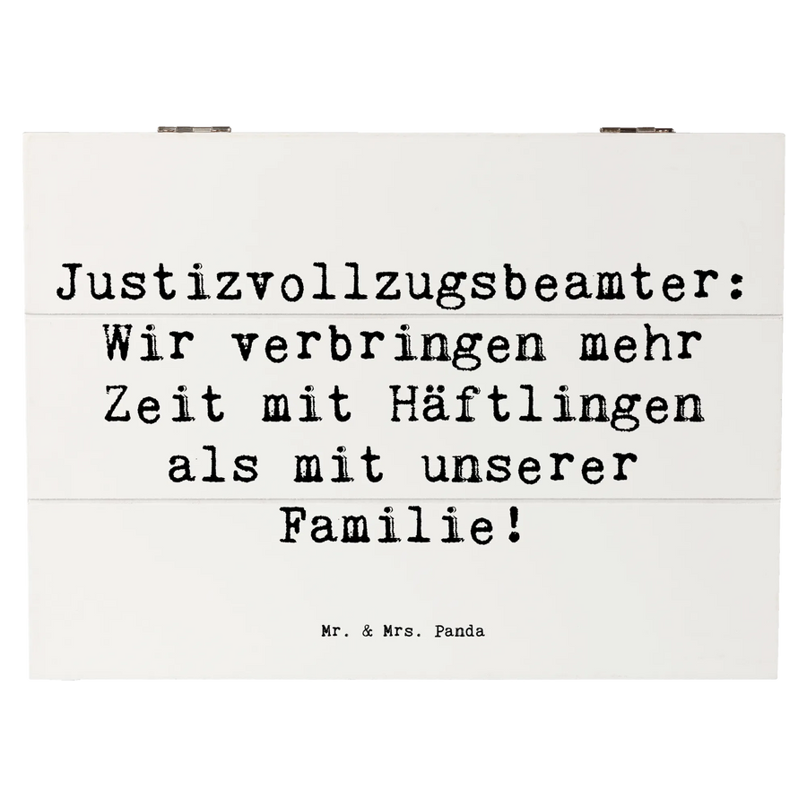 Die wunderschöne Holzkiste von Mr. & Mrs. Panda mit dem Spruch "Justizvollzugsbeamter: Wir verbringen mehr Zeit mit Häftlingen als mit unserer Familie!" ist das perfekte Geschenk für alle, die im Justizvollzugswesen arbeiten oder einfach nur eine humorvolle Erinnerung an ihren Beruf haben möchten.