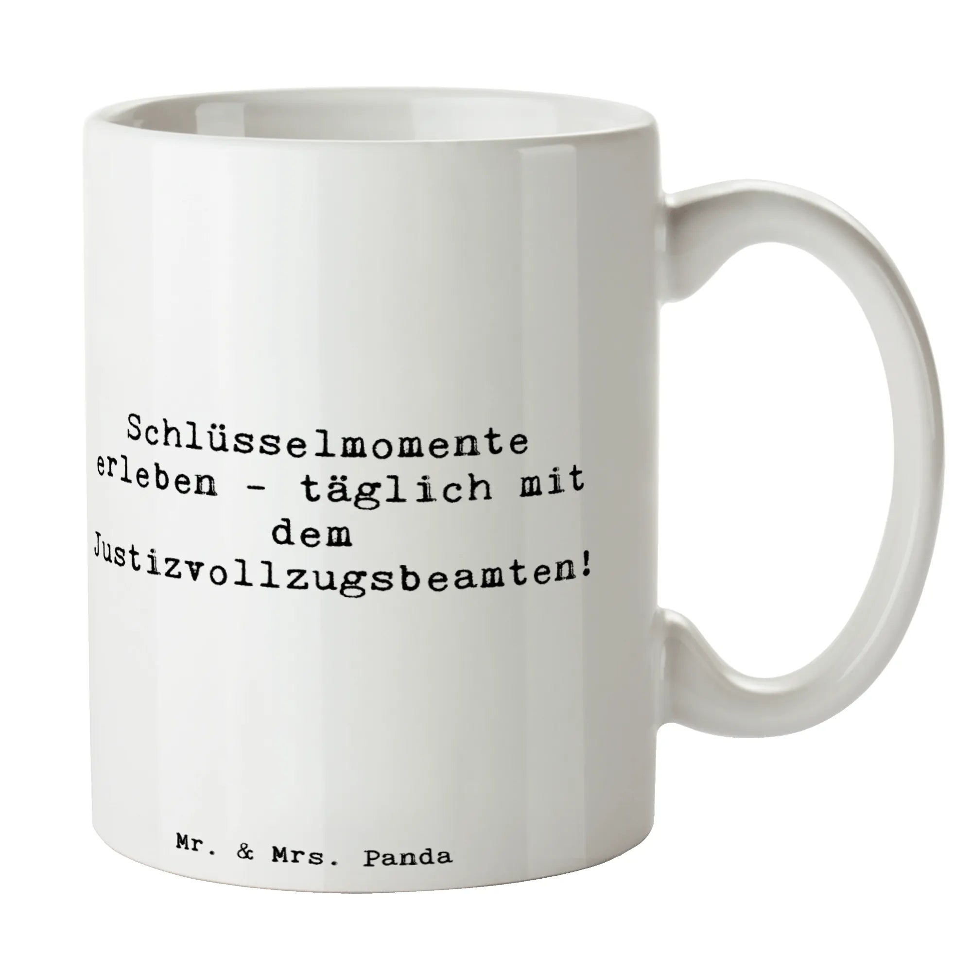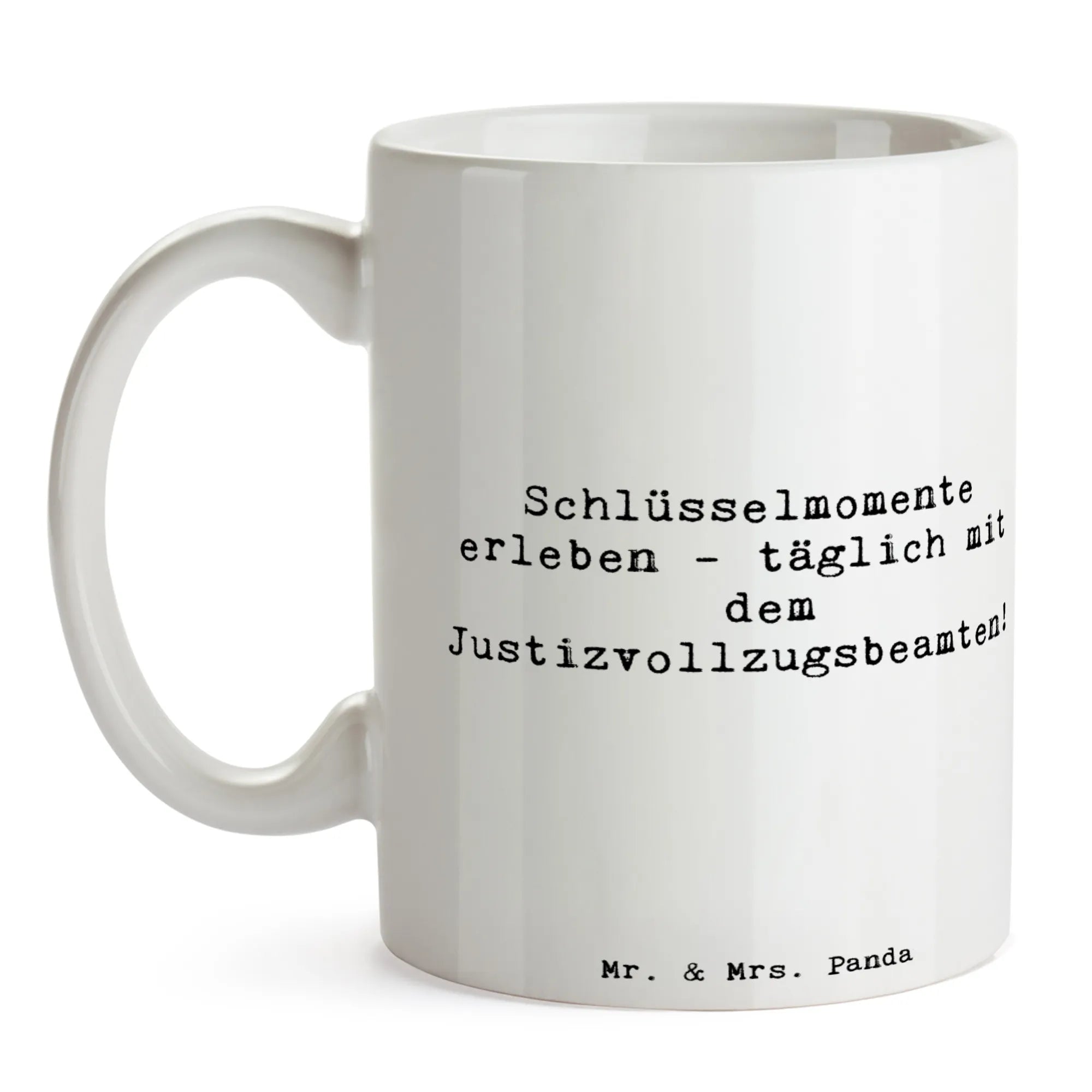 Suchst Du ein Herzensgeschenk für einen Justizvollzugsbeamten? ☕🎁 Unsere Mr. & Mrs. Panda Tasse „Justizvollzugsbeamte“ aus der Berufe-Kollektion ist genau das Richtige: liebevoll illustriert, mit dem herzlichen Spruch „Schlüsselmomente erleben - täglich mit dem Justizvollzugsbeamten!“ und in der sanften Hintergrundfarbe Meeresbrise. Das Motiv wurde von Mrs. Panda handgezeichnet und verleiht der Tasse eine besondere, persönliche Note.