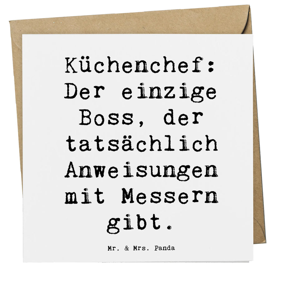 Die Deluxe Karte zum Thema Koch aus der besonderen Kollektion Berufe von Mr. & Mrs. Panda ist das perfekte Geschenk für alle, die die Küchenleidenschaft in ihrem Beruf leben! Mit dem liebevoll gestalteten Motiv und dem witzigen Spruch "Küchenchef: Der einzige Boss, der tatsächlich Anweisungen mit Messern gibt." bringt diese Karte nicht nur Freude, sondern auch ein Lächeln auf die Gesichter Deiner Freunde, Kollegen oder Familienmitglieder.