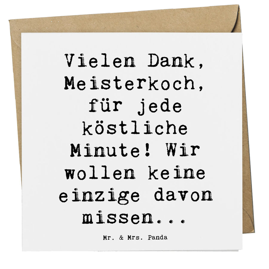 Die Deluxe Karte Koch von Mr. & Mrs. Panda ist das perfekte Geschenk für jeden, der gerne kocht oder kochen lernt. Mit dem liebevollen Spruch "Vielen Dank, Meisterkoch, für jede köstliche Minute! Wir wollen keine einzige davon missen..." bringst du Deine Wertschätzung für die kulinarischen Talente in Deinem Leben zum Ausdruck.