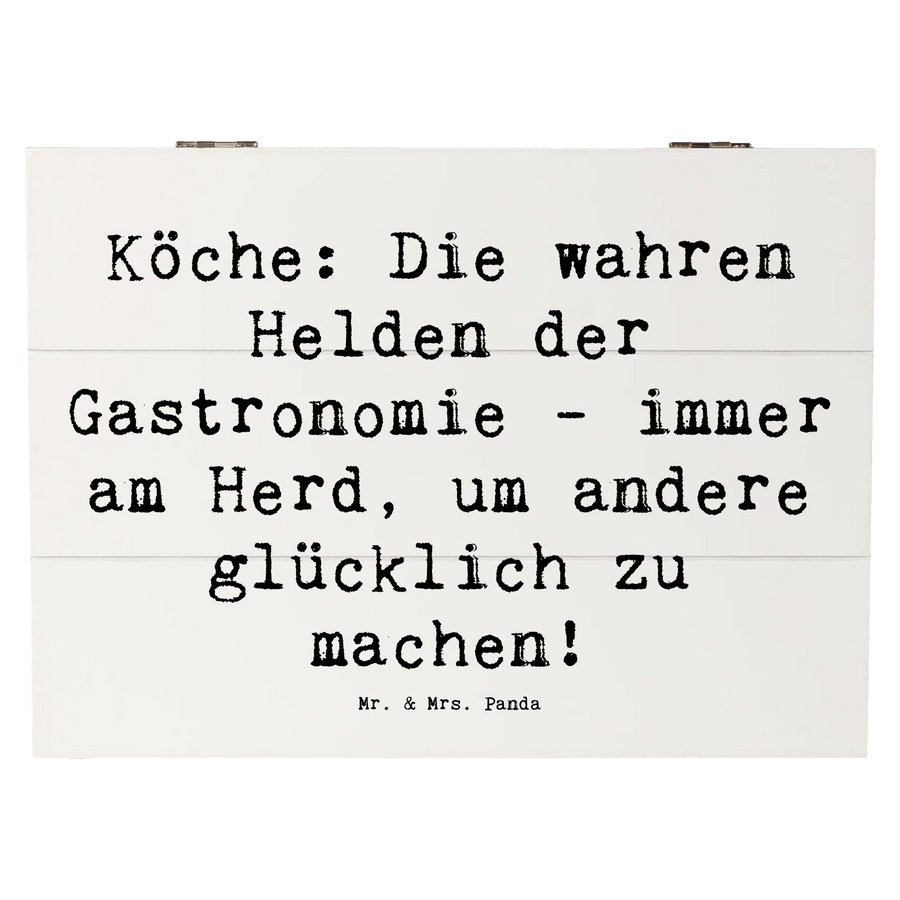 Die wunderschöne Holzkiste von Mr. & Mrs. Panda mit dem liebevollen Motiv "Köche: Die wahren Helden der Gastronomie - immer am Herd, um andere glücklich zu machen!" ist das perfekte Geschenk für alle, die ihre Passion für das Kochen oder die Gastronomie in einem dekorativen und praktischen Objekt ausdrücken möchten. Mit einem großzügigen Platzangebot von 19 x 12 cm ist diese Erinnerungskiste ideal, um besondere Schätze und Erinnerungen aufzubewahren, sei es für persönliche Fotos, handgeschriebene Rezepte oder besondere Gegenstände aus der Kindheit.