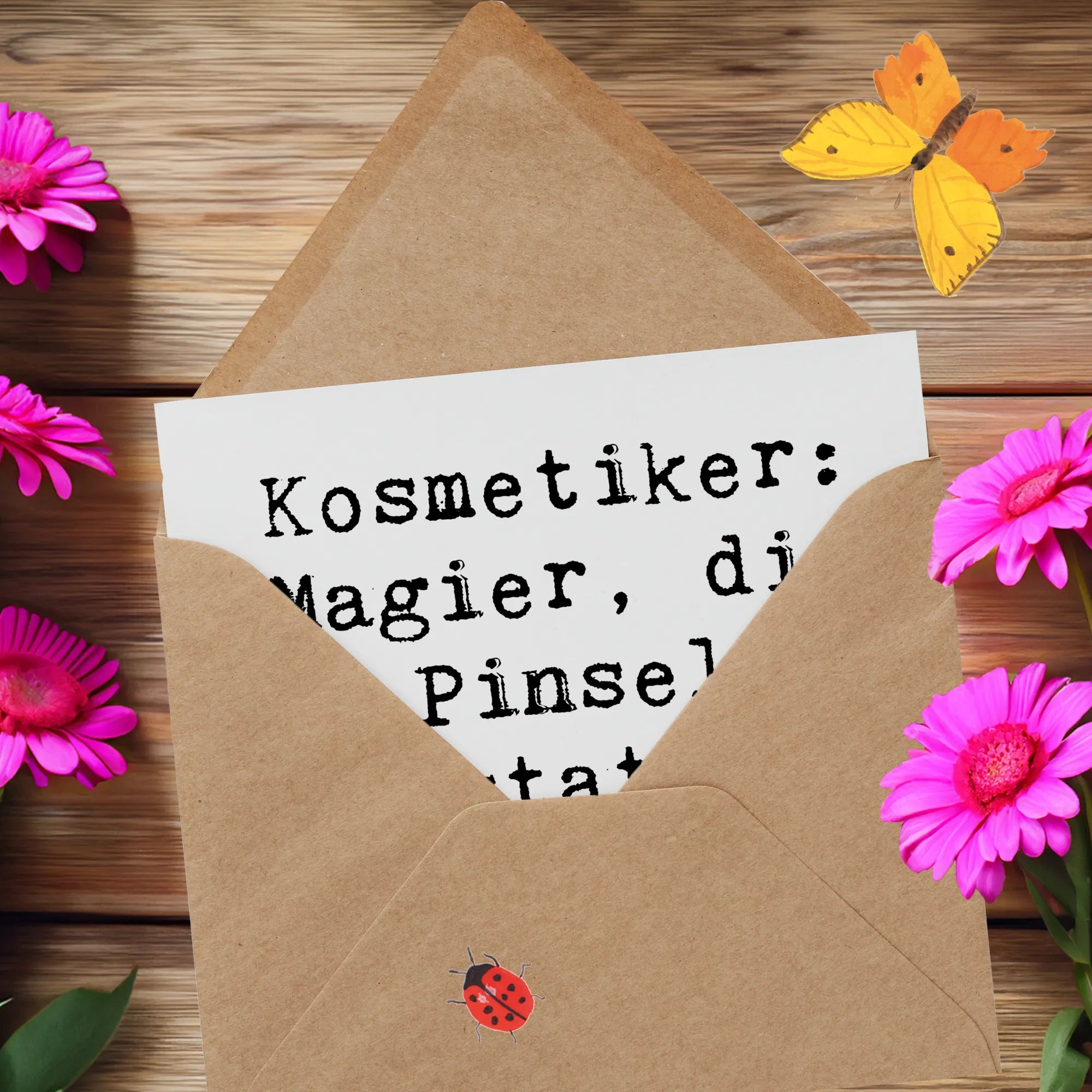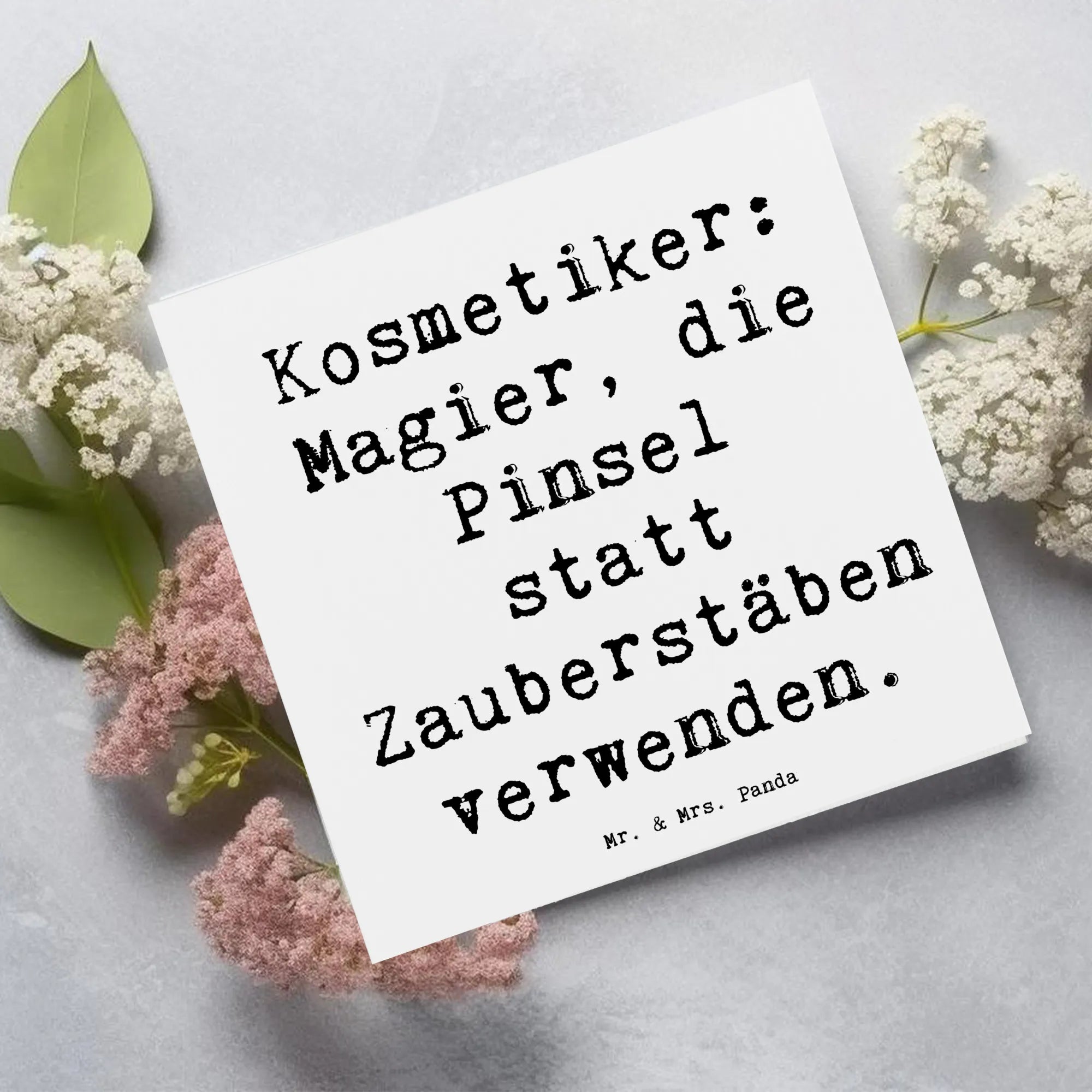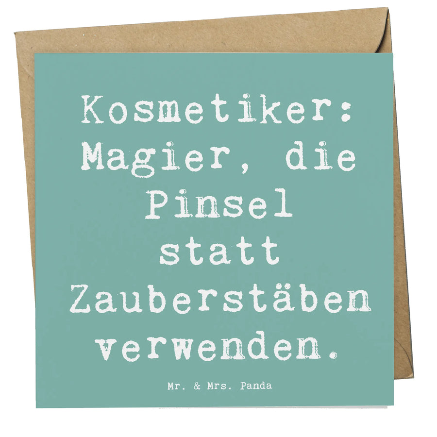 Entdecke die perfekte Grußkarte für Kosmetiker! Diese Deluxe Karte mit dem liebevollen Motiv "Kosmetiker: Magier, die Pinsel statt Zauberstäben verwenden." aus der Berufe Kollektion von Mr. & Mrs. Panda ist ein ganz besonderes Geschenk für jede Kosmetikerin oder jeden Kosmetiker.