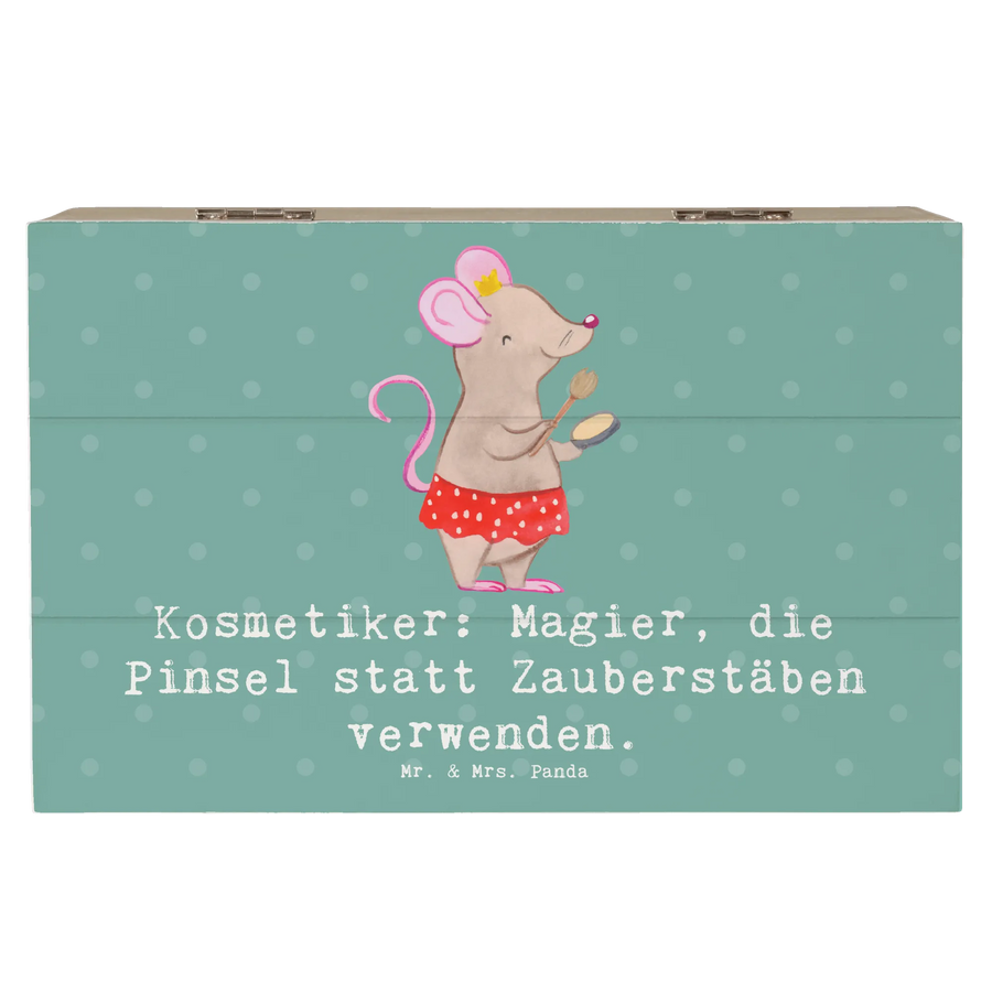 Entdecke die zauberhafte Holzkiste "Kosmetiker" aus der Kollektion Berufe von Mr. & Mrs. Panda! Diese wunderschöne Erinnerungskiste ist nicht nur ein praktischer Aufbewahrungsort für all Deine kostbaren Schätze, sondern auch eine liebevolle Hommage an die faszinierende Welt der Kosmetik.