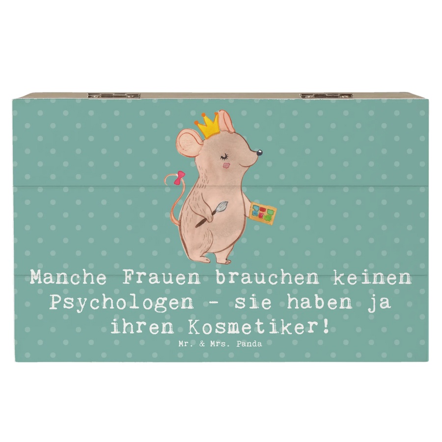 Die wunderschöne Holzkiste von Mr. & Mrs. Panda ist das perfekte Geschenk für jeden Kosmetiker und all jene, die die Schönheit lieben! Mit dem liebevoll designten Motiv 'Manche Frauen brauchen keinen Psychologen - sie haben ja ihren Kosmetiker!' ist diese Kiste nicht nur ein echter Hingucker, sondern auch ein Ausdruck von Wertschätzung für die Kunst der Schönheitspflege.
