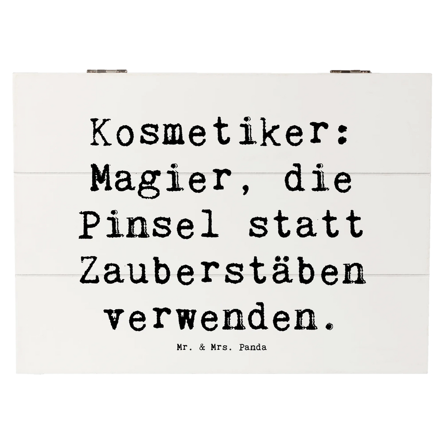 Unsere Holzbox aus der Berufe-Kollektion ist perfekt für Kosmetikerinnen und Kosmetiker, die Ordnung mit Stil lieben. Bedruckt mit dem liebevollen Spruch „Kosmetiker: Magier, die Pinsel statt Zauberstäben verwenden.“ und einem handgezeichneten Aquarell-Motiv von Mrs. Panda wird diese Holzkiste schnell zum Lieblingsstück im Salon oder Zuhause.