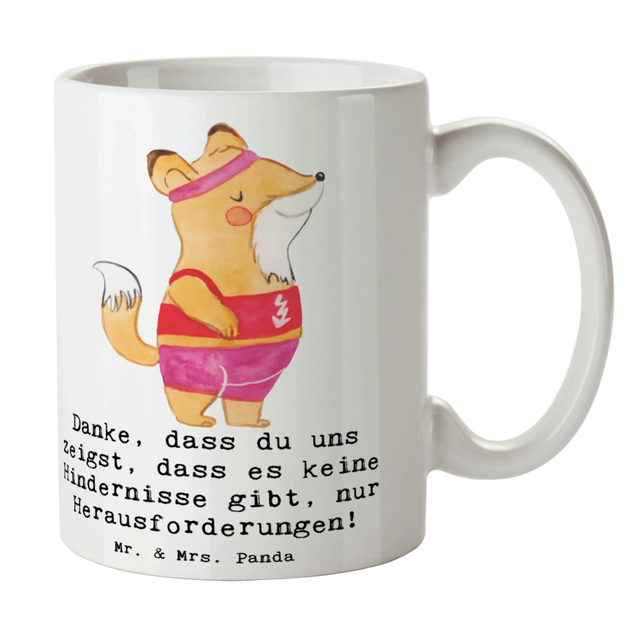 Die perfekte Tasse für deine Leichtathletik Trainerin! Unsere hochwertige Keramiktasse von Mr. & Mrs. Panda ist nicht nur ein funktionales Accessoire, sondern auch ein einzigartiges Dankeschön für all die harte Arbeit und Hingabe, die Trainerin in die Entwicklung ihrer Athleten steckt. Auf der Tasse prangt der liebevoll gestaltete Spruch 'Danke, dass du uns zeigst, dass es keine Hindernisse gibt, nur Herausforderungen!'. Damit zeigst du deiner Trainerin, wie sehr du ihre Motivation und ihren Spirit schätzt.