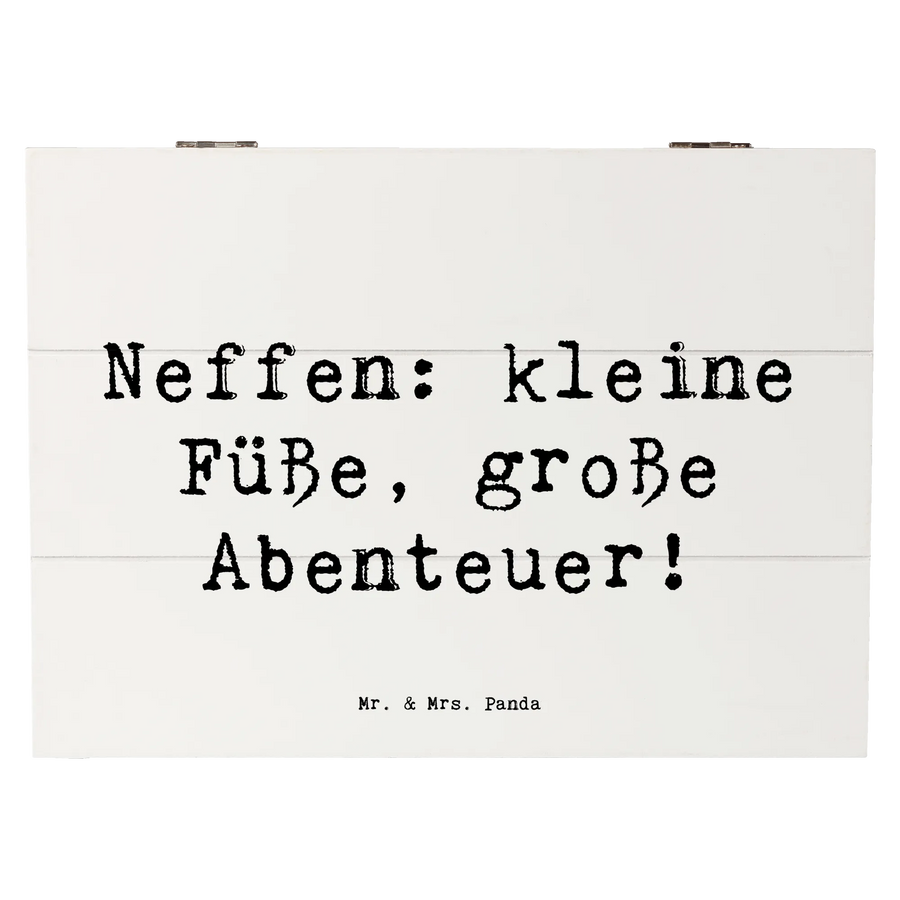 Die zauberhafte Holzkiste von Mr. & Mrs. Panda ist das perfekte Geschenk für deinen Neffen! In einem eleganten Design mit dem liebevollen Spruch 'Neffen: kleine Füße, große Abenteuer!' ist diese XXL Erinnerungsbox mehr als nur eine Kiste. Sie ist ein Ort für all die wertvollen Schätze, die euer gemeinsames Leben bereithält. Egal, ob es sich um Erinnerungen an die Kindheit, besondere Geschenke oder kleine Souvenirs handelt – hier findet alles seinen Platz.