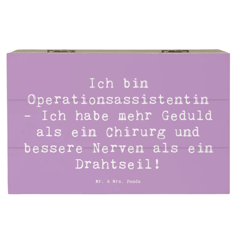 Die wunderschöne Holzkiste von Mr. & Mrs. Panda ist das ideale Geschenk für alle Operationsassistentinnen, die stolz auf ihren Beruf sind! Mit dem liebevoll gestalteten Slogan "Ich bin Operationsassistentin - Ich habe mehr Geduld als ein Chirurg und bessere Nerven als ein Drahtseil!" ist diese Kiste nicht nur ein praktisches Aufbewahrungsobjekt, sondern auch ein herzlicher Ausdruck der Anerkennung.