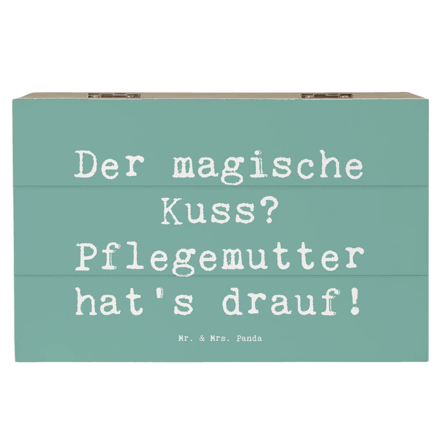 Eine kleine Truhe voller großer Gefühle. Unsere Holzkiste „Pflegemutter“ von Mr. & Mrs. Panda ist mehr als nur eine Box – sie ist Erinnerungskiste, Geschenkbox und Schatzkiste in einem. Auf dem Deckel prangt der liebevolle Spruch „Der magische Kuss? Pflegemutter hat's drauf!“, der genau das ausdrückt, wofür Pflegemütter jeden Tag stehen: Fürsorge, Wärme und Geborgenheit.