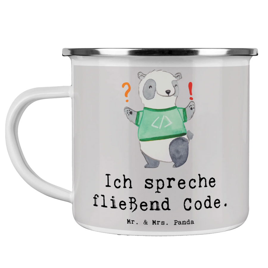 Die wunderschöne Camping Emaille Tasse von Mr. & Mrs. Panda ist das perfekte Geschenk für Softwareentwickler und Programmierer. Egal, ob beim gemeinsamen Ausflug ins Grüne oder beim Kaffeekränzchen im Büro – mit dieser Tasse sorgst Du bei Deinen Tech-Freunden für Begeisterung! Die Tasse, bedruckt mit dem liebevollen Slogan "Ich spreche fließend Code", bringt einen Hauch von Humor und Identifikation mit dem Beruf ins Spiel.