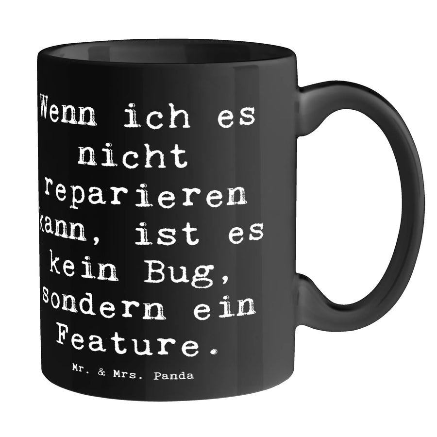Feier die Kunst der Softwareentwicklung mit unserer einzigartigen Tasse, die speziell für all jene programmiert wurde, die in der Welt der Technologie leben und arbeiten! Diese wunderschöne, spülmaschinenfeste Keramiktasse von Mr. & Mrs. Panda ziert ein charmantes Motiv mit dem Spruch: "Wenn ich es nicht reparieren kann, ist es kein Bug, sondern ein Feature." Dies ist der perfekte Kaffee- oder Teebecher für Softwareentwickler, die das Codieren, Testen und Implementieren von innovativen Lösungen lieben.