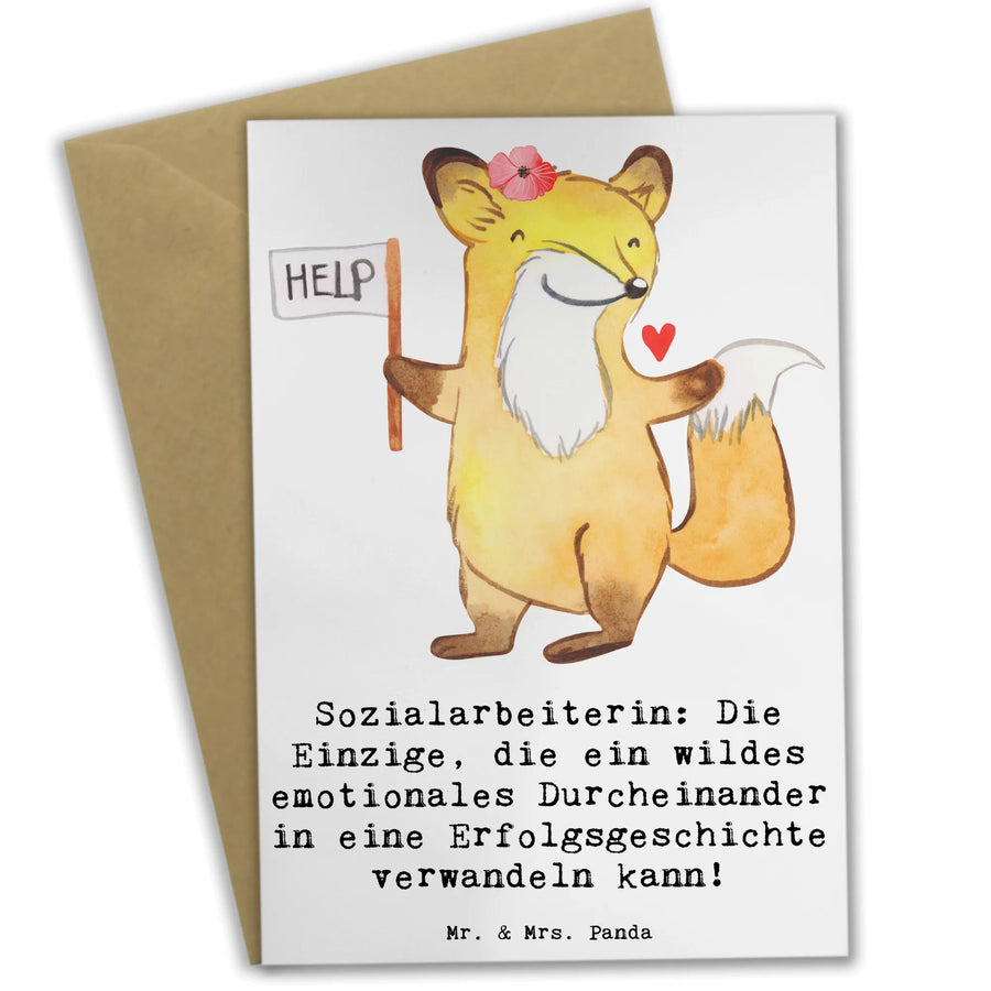 Diese wunderschöne Grußkarte von Mr. & Mrs. Panda zum Thema Sozialarbeiterin ist das perfekte Geschenk für alle, die sich in diesem bedeutenden Beruf engagieren. Mit dem liebevoll gestalteten Motiv und dem Spruch "Sozialarbeiterin: Die Einzige, die ein wildes emotionales Durcheinander in eine Erfolgsgeschichte verwandeln kann!" bringt die Karte nicht nur ein Lächeln auf die Lippen, sondern auch Wertschätzung für die wertvolle Arbeit, die Sozialarbeiter leisten.