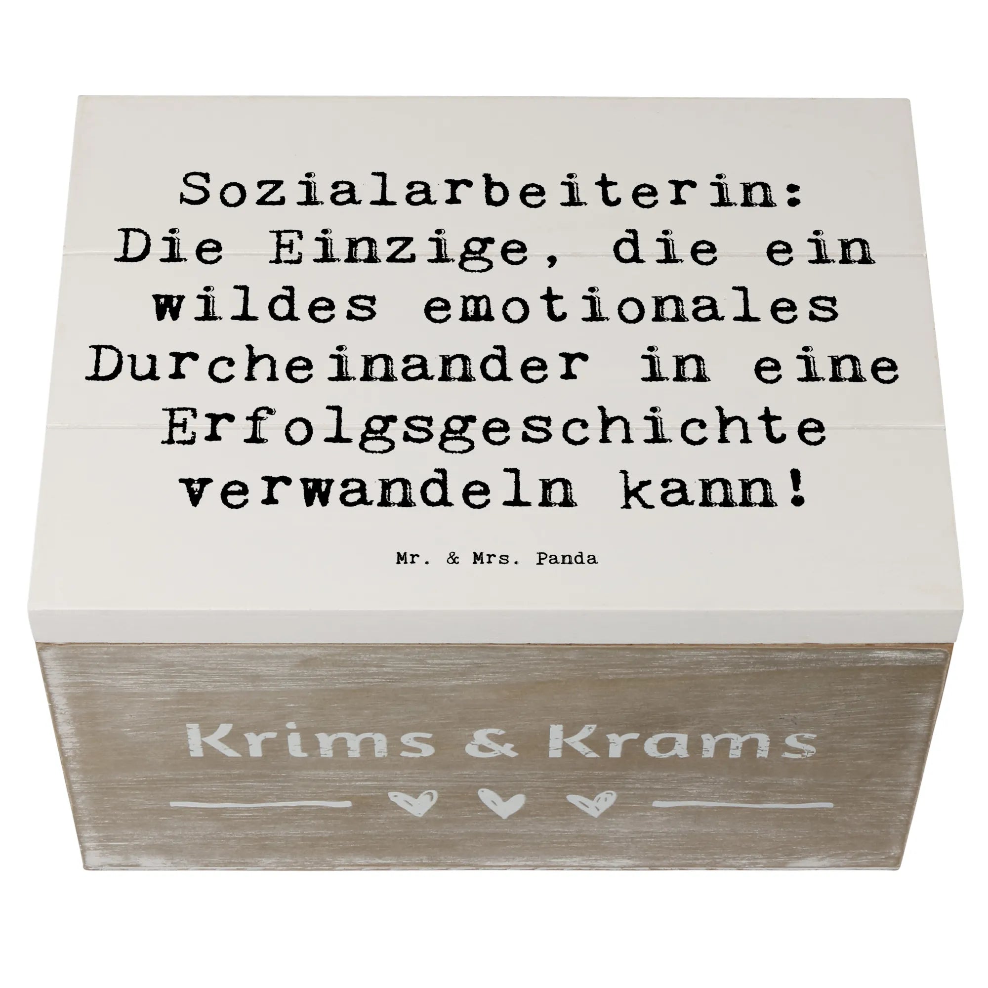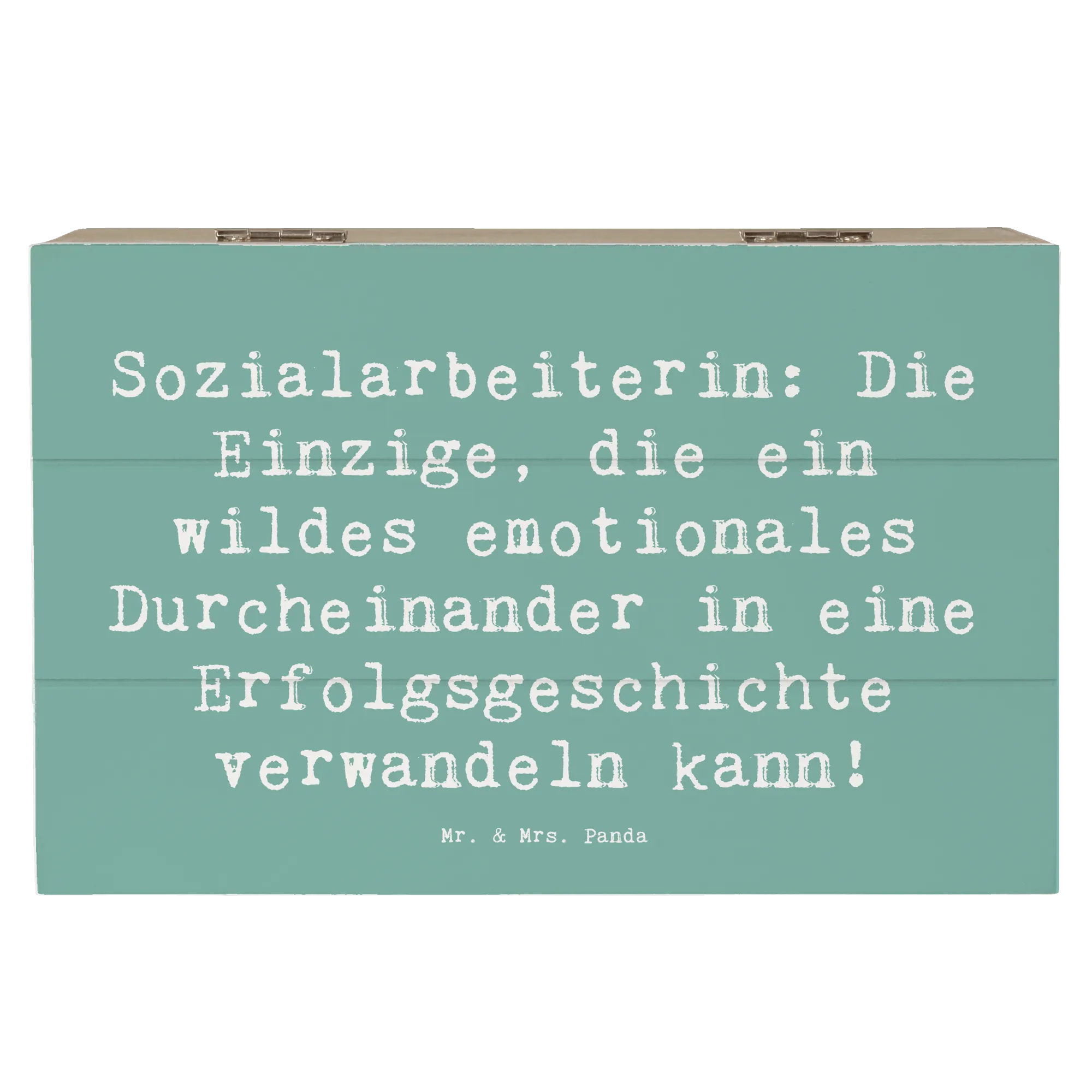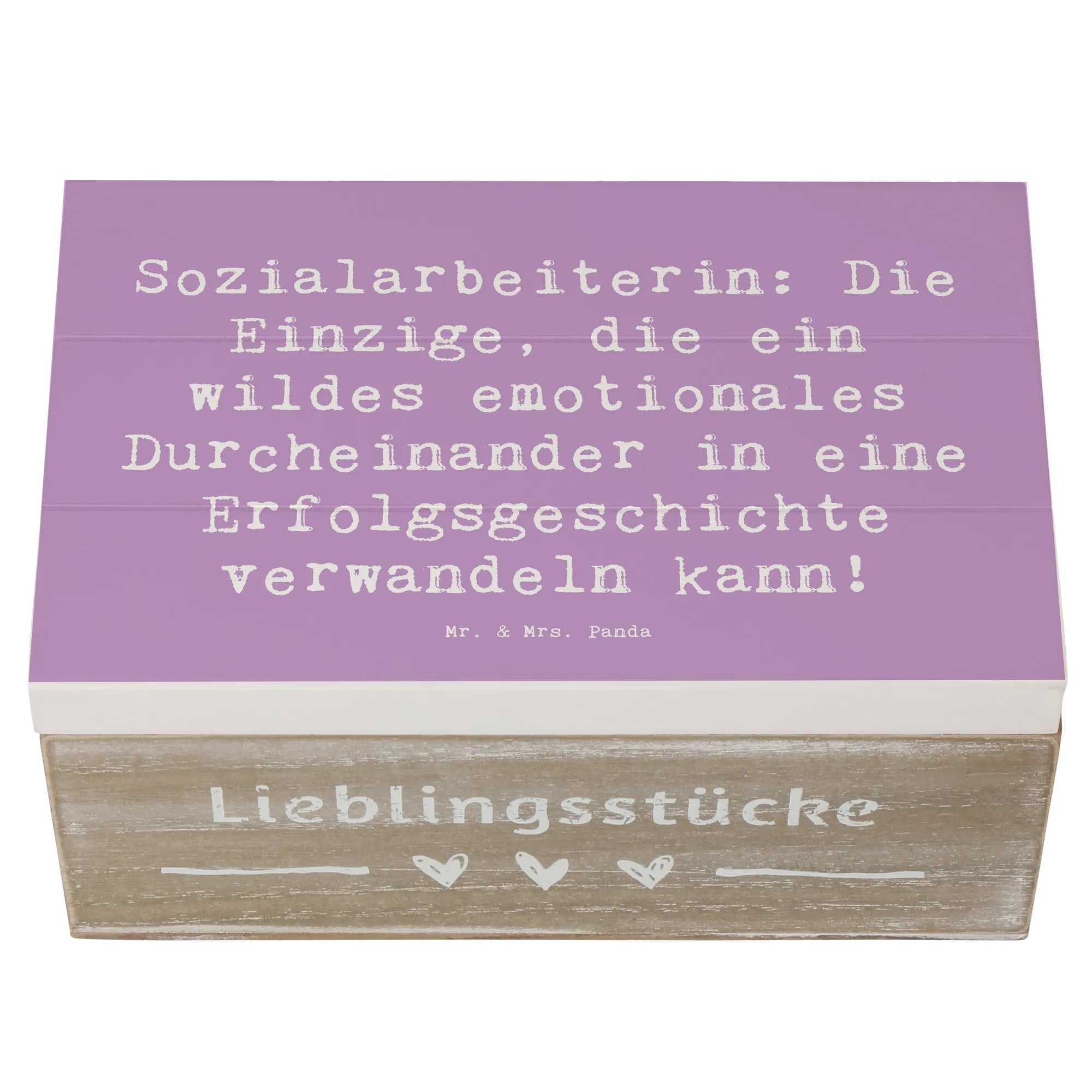 Die wunderschöne Holzkiste "Sozialarbeiterin" von Mr. & Mrs. Panda ist die ideale Geschenkidee für alle, die im sozialen Bereich arbeiten. Diese liebevoll gestaltete Erinnerungskiste bietet Platz für all die besonderen Schätze und Erinnerungen, die Du im Laufe der Jahre gesammelt hast. Ob Fotos, Briefe oder kleine Andenken – alles findet hier seinen Platz.