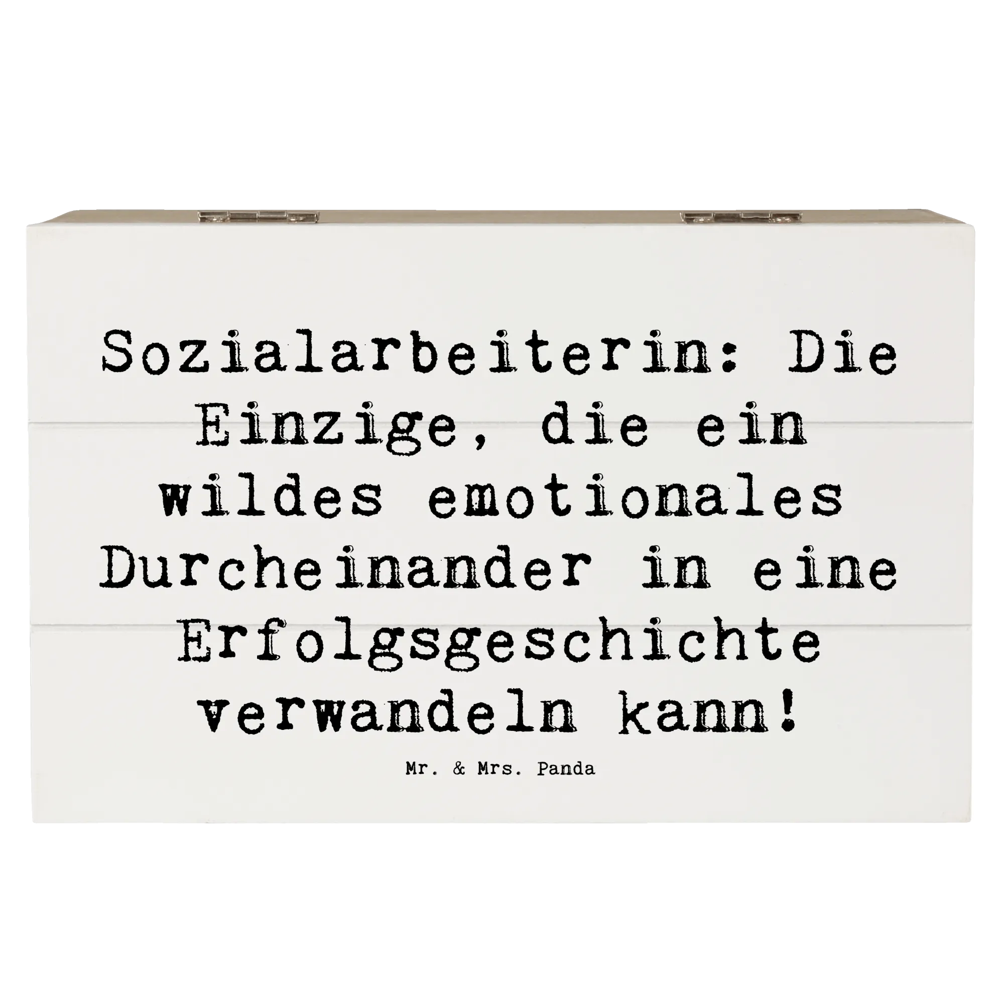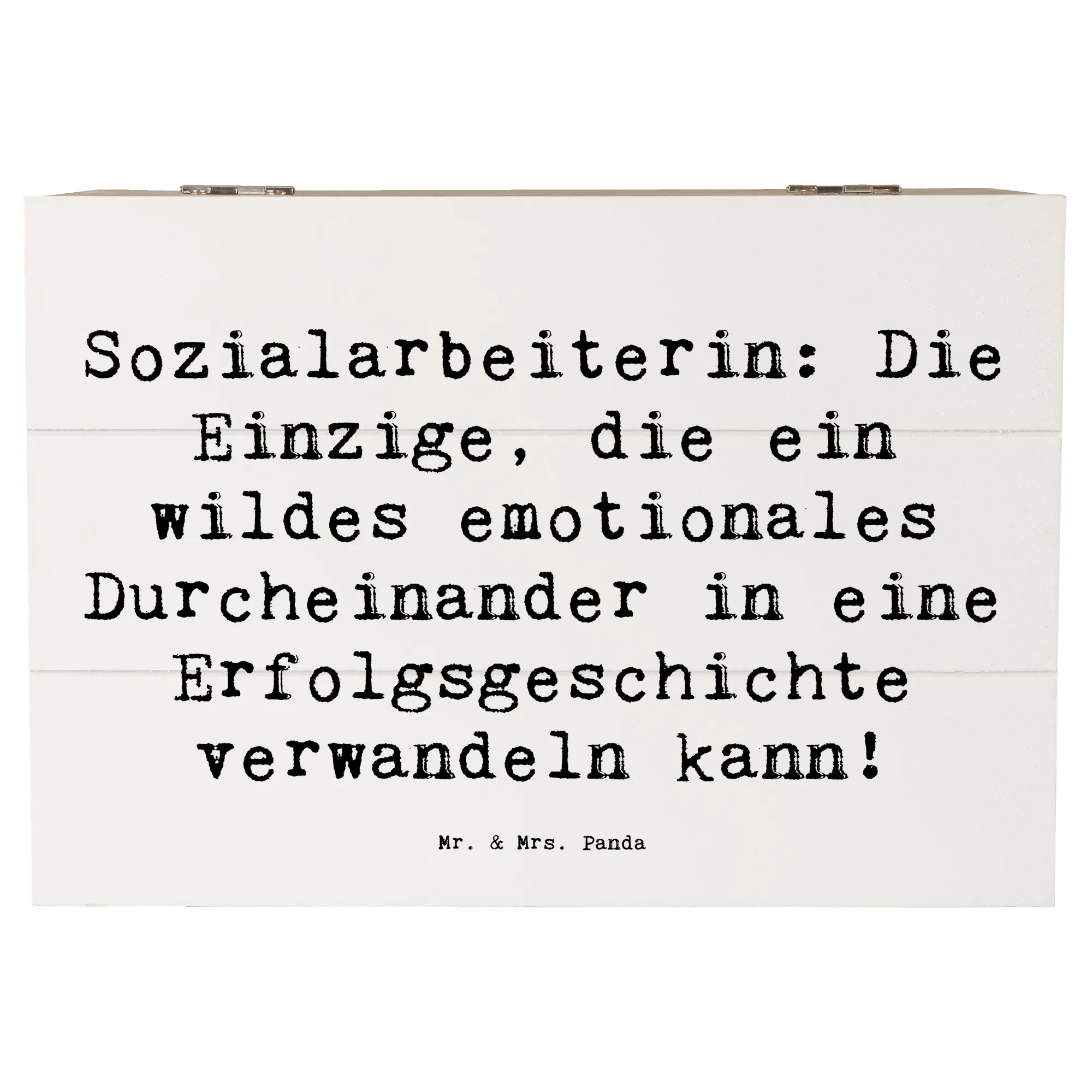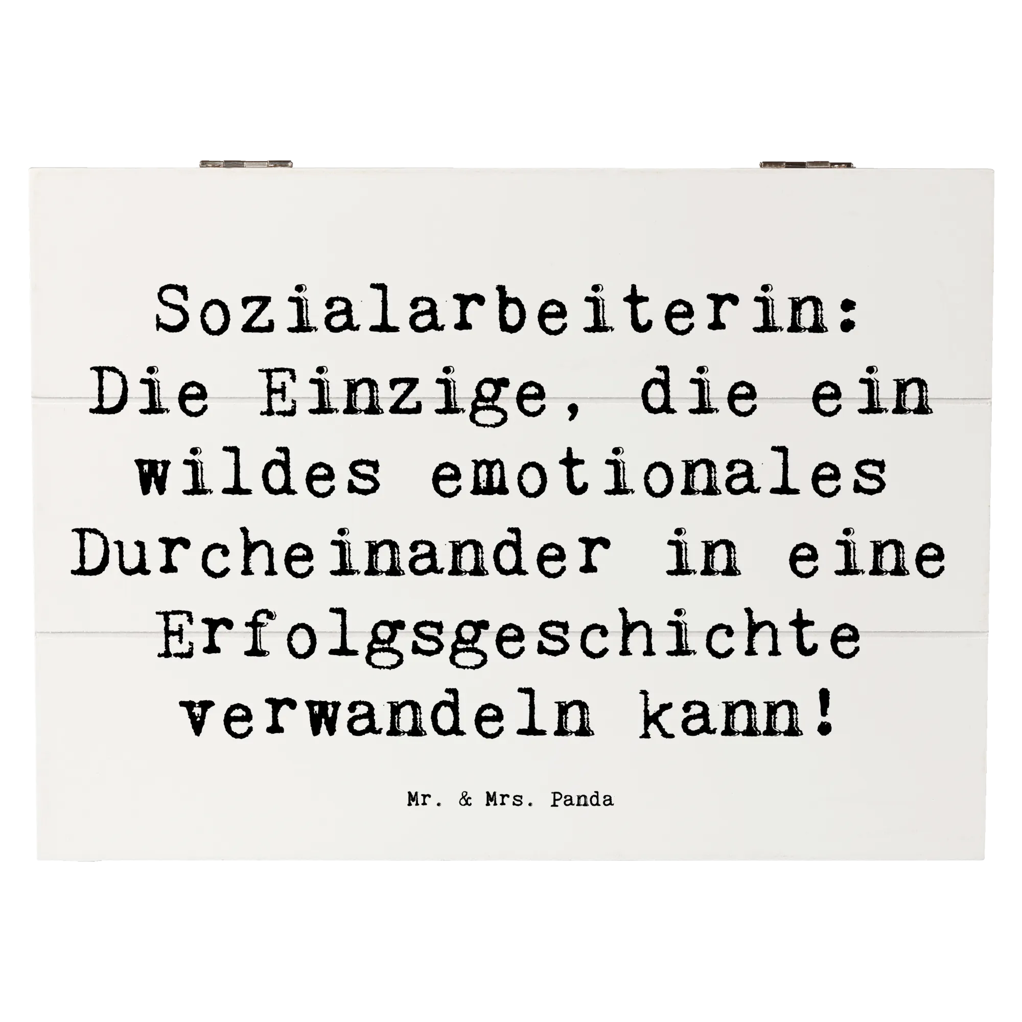 Die wunderschöne Holzkiste "Sozialarbeiterin" von Mr. & Mrs. Panda ist die ideale Geschenkidee für alle, die im sozialen Bereich arbeiten. Diese liebevoll gestaltete Erinnerungskiste bietet Platz für all die besonderen Schätze und Erinnerungen, die Du im Laufe der Jahre gesammelt hast. Ob Fotos, Briefe oder kleine Andenken – alles findet hier seinen Platz.