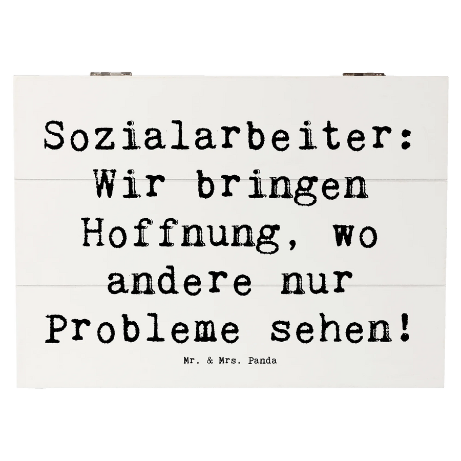 Mit ihren liebevoll gestalteten Motiven und dem einfühlsamen Spruch "Sozialarbeiter: Wir bringen Hoffnung, wo andere nur Probleme sehen!" ist diese Kiste nicht nur funktional, sondern auch eine wunderbare Dekoration für Dein Zuhause.