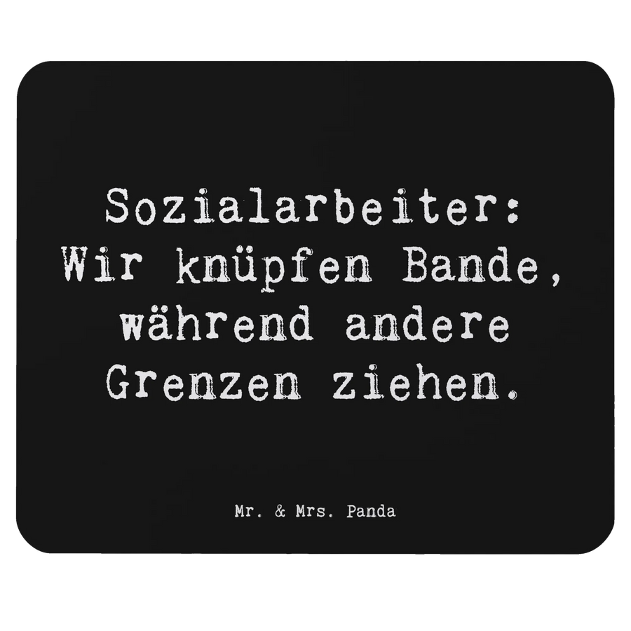 Wenn Du auf der Suche nach einem ganz besonderen Geschenk für eine leidenschaftliche Sozialarbeiterin bist, dann ist das Mauspad von Mr. & Mrs. Panda genau das richtige! Mit dem inspirierenden Slogan "Sozialarbeiter: Wir knüpfen Bande, während andere Grenzen ziehen" bringt dieses Mauspad nicht nur Farbe, sondern auch eine Portion Motivation in den Büroalltag. Erlebe, wie wichtig und schön der Beruf der Sozialarbeiterin ist, während Du am Arbeitsplatz deine Maus über dieses eleganten, farbenfrohen Mauspad gleiten lässt.
