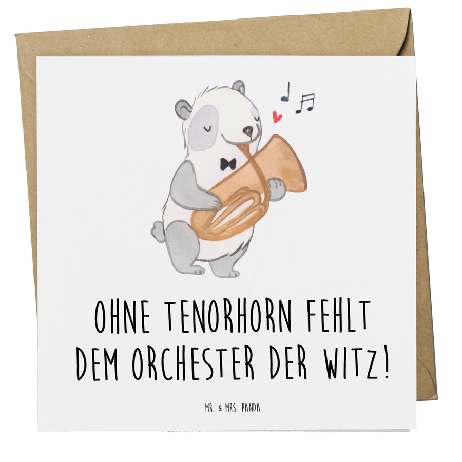 Die Deluxe Karte mit dem Motiv Tenorhorn von Mr. & Mrs. Panda ist das perfekte Geschenk für alle Musikliebhaber und Musiker. Mit ihrem liebevollen Design und dem humorvollen Spruch "Ohne Tenorhorn fehlt dem Orchester der Witz!" bringt sie Freude in jede Botschaft.