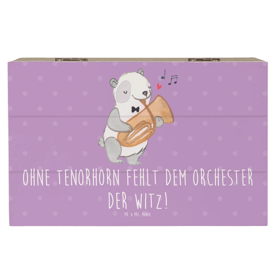 Entdecke die wunderschöne Holzkiste mit dem wertvollen Tenorhorn-Motiv von Mr. & Mrs. Panda! Diese besondere Kiste ist nicht nur ein praktischer Aufbewahrungsort für deine Schätze, sondern auch ein echtes Statement für Musikliebhaber und Musiker.