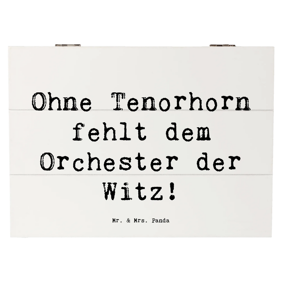 Die wunderschöne Holzkiste von Mr. & Mrs. Panda ist das perfekte Geschenk für all diejenigen, die die Musik und insbesondere das Tenorhorn lieben! Mit dem süßen Spruch 'Ohne Tenorhorn fehlt dem Orchester der Witz!' ist diese Kiste nicht nur ein echter Hingucker, sondern bietet auch einen wunderbaren Aufbewahrungsort für all deine Schätze.