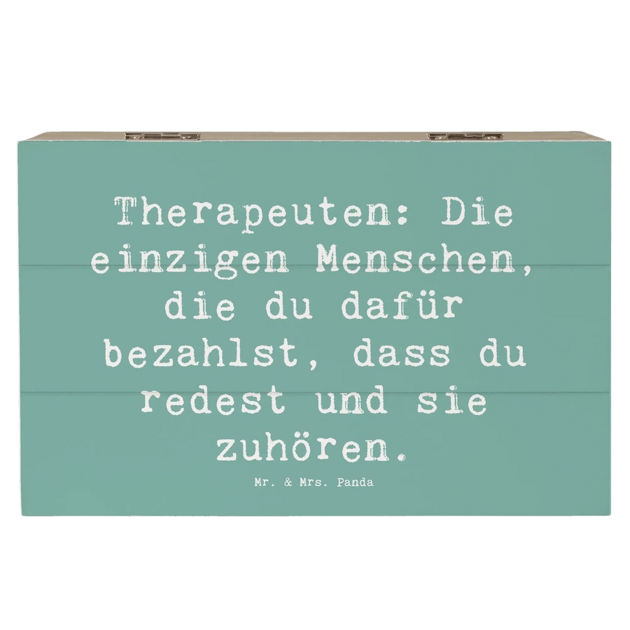 Diese wunderschöne Holzkiste von Mr. & Mrs. Panda ist das perfekte Geschenk für Therapeuten und Therapeuteninnen. Mit dem liebevoll gestalteten Motiv und dem Spruch „Therapeuten: Die einzigen Menschen, die du dafür bezahlst, dass du redest und sie zuhören.“ wird diese Kiste nicht nur zu einem praktischen Aufbewahrungsort, sondern auch zu einem besonderen Erinnerungsstück.