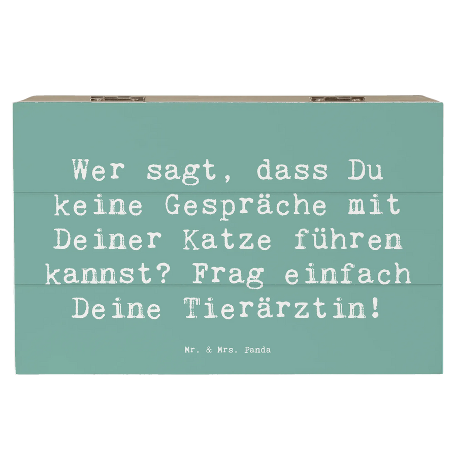 Holzkiste Spruch Wer sagt, dass Du keine Gespräche mit Deiner Katze führen kannst? Frag einfach Deine Tierärztin! - 19 x 12 cm - Meeresbrise